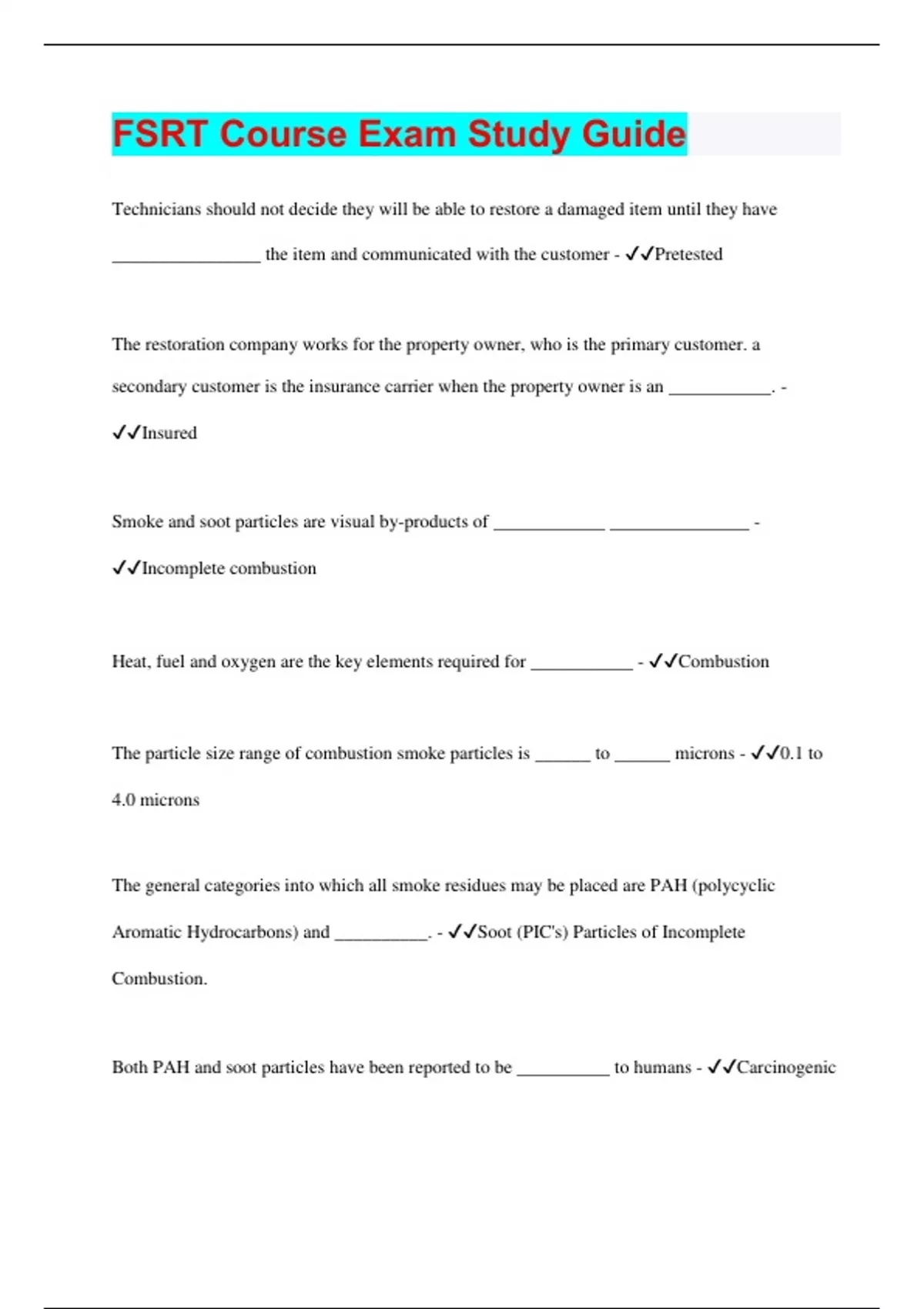 fsrt course exam study guide