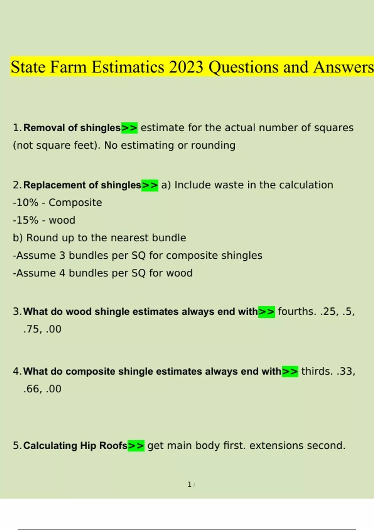 State Farm Estimatics Exam 2023 Questions and Answers | 100% Verified