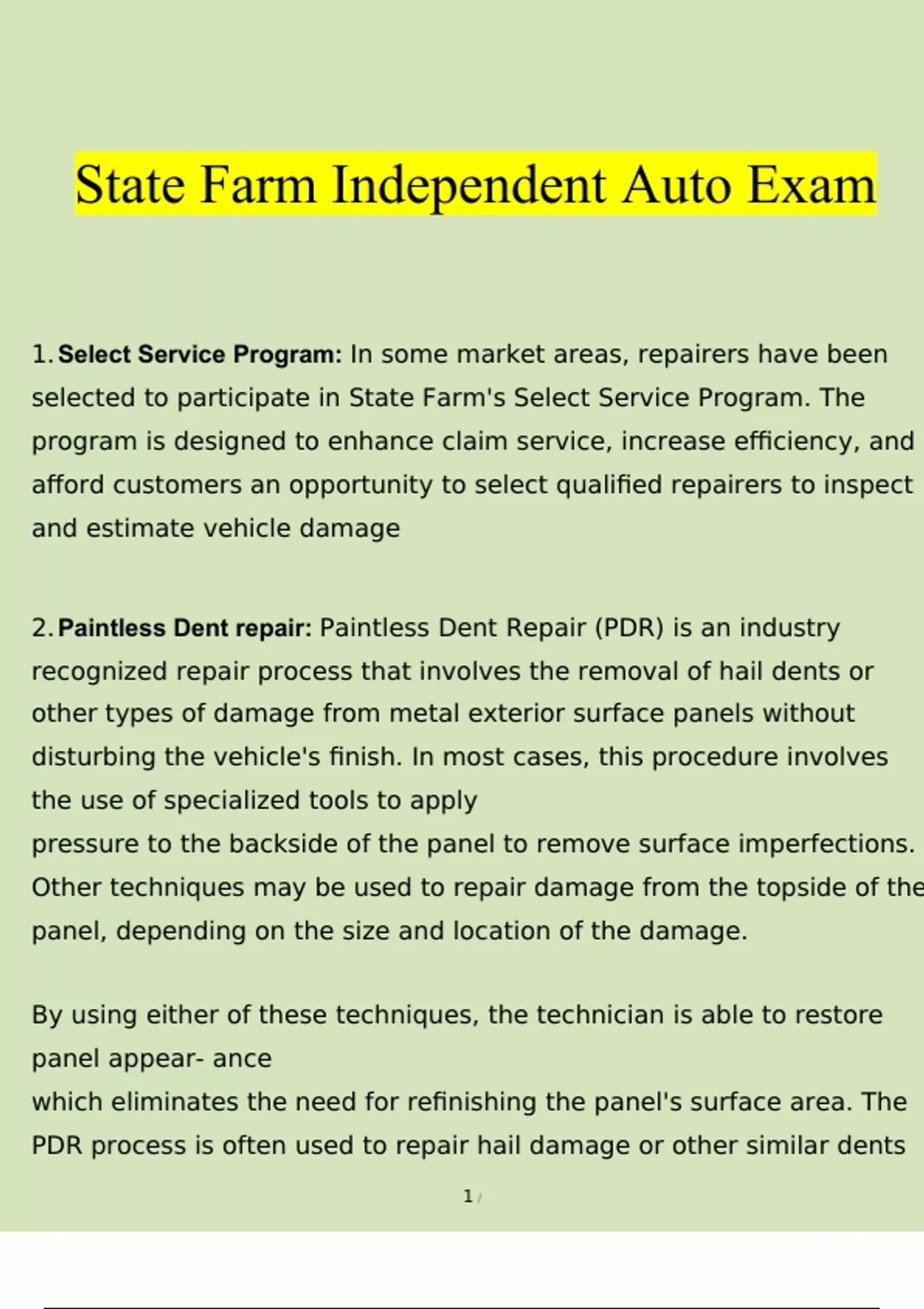 State Farm Independent Auto Exam 2023 Complete Solutions | 100% Verified