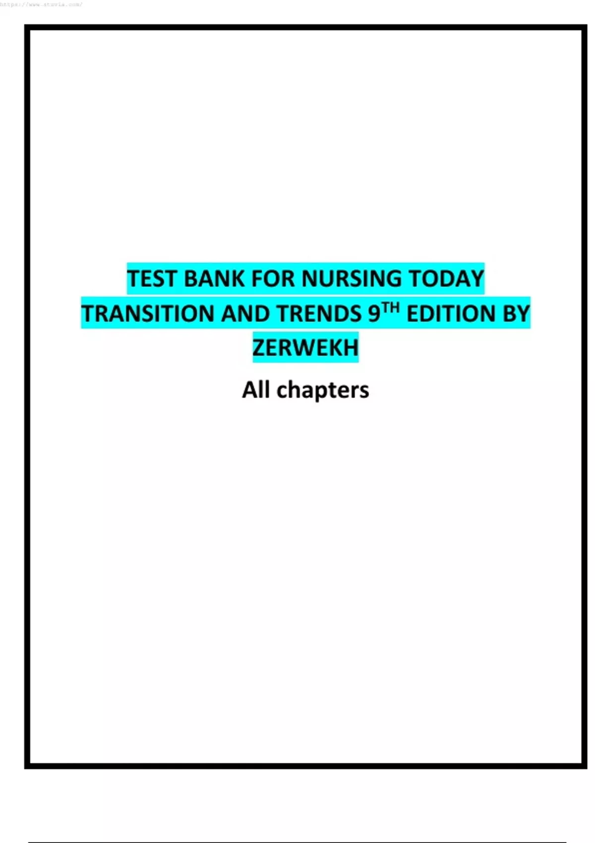 test bank for nursing today transition and trends 9th edition by zerwekh all chapterspdf