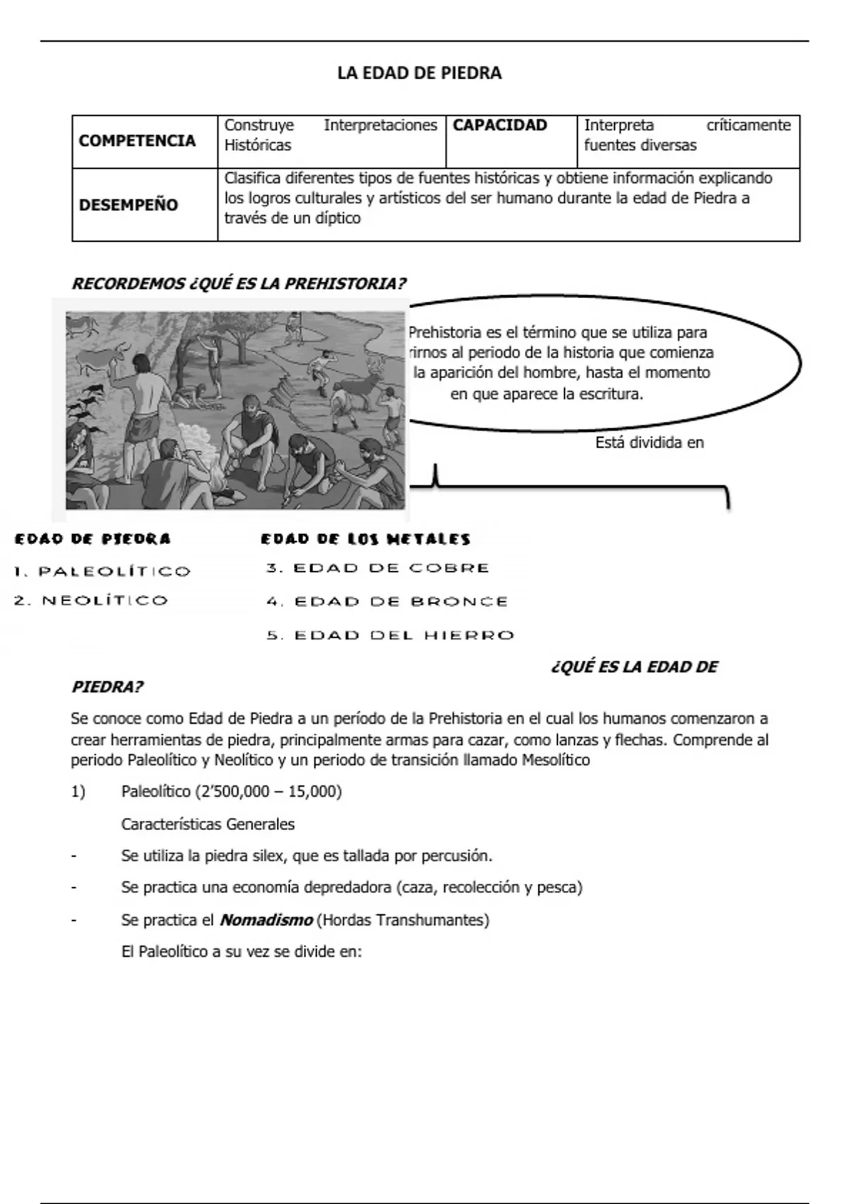 DESEMPEÑO los logros culturales y artísticos del ser humano durante la edad de Piedra a