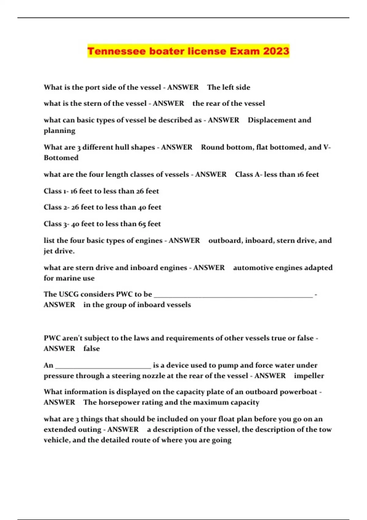 Tennessee boater license Exam 2023 Questions with 100% Answers