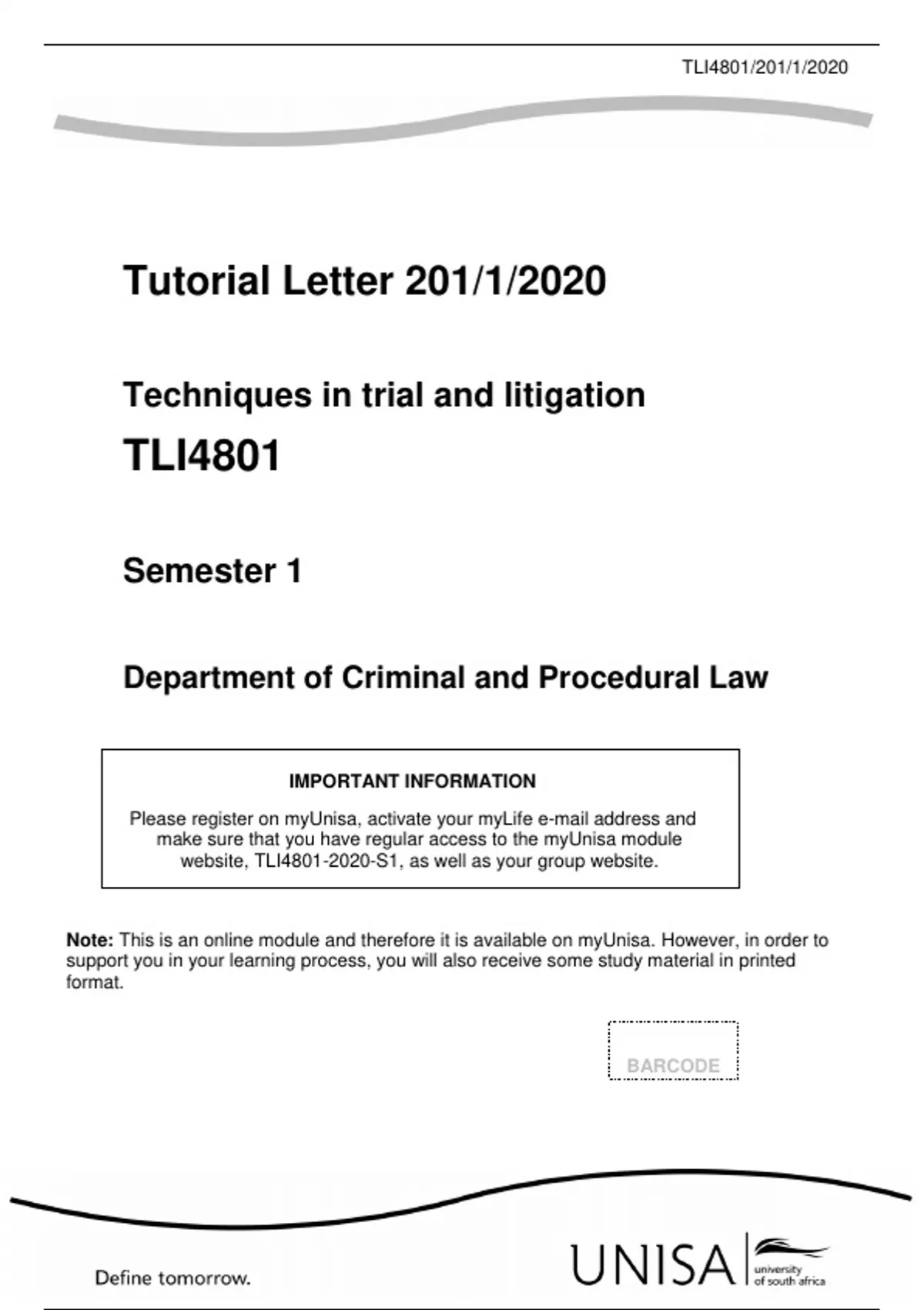 Note: This is an online module and therefore it is available on myUnisa. However, in order to