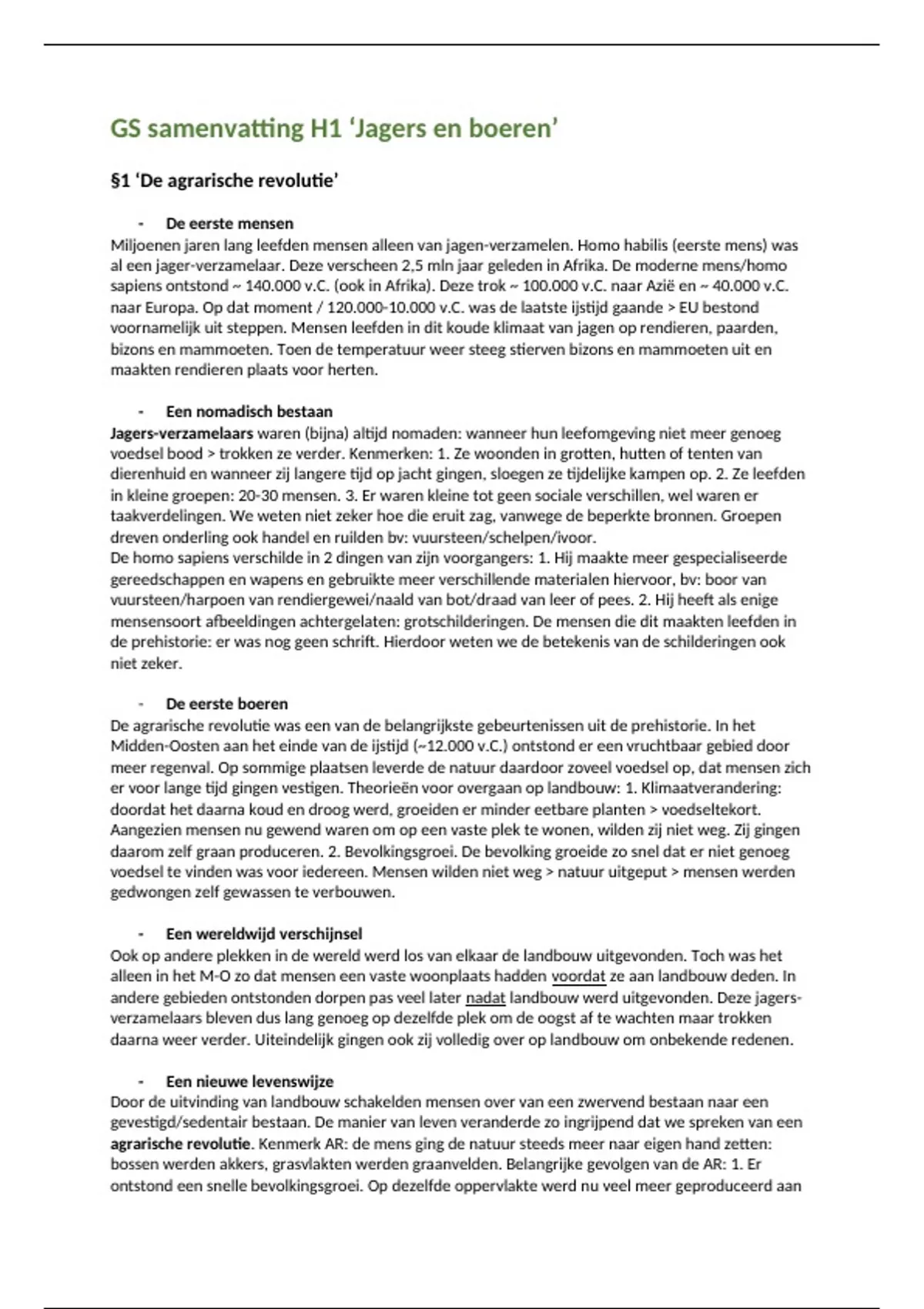 GS samenvatting H1 ‘Jagers en boeren’
