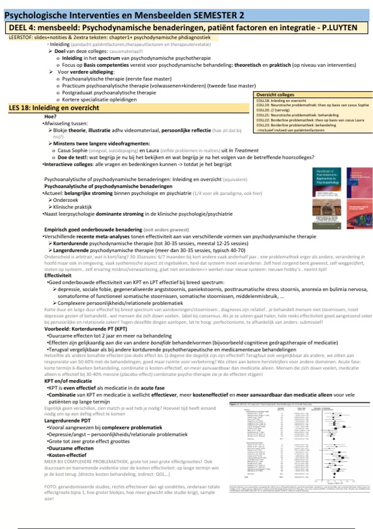 DEEL 4: mensbeeld: Psychodynamische benaderingen, patiënt factoren en integratie - P.LUYTEN