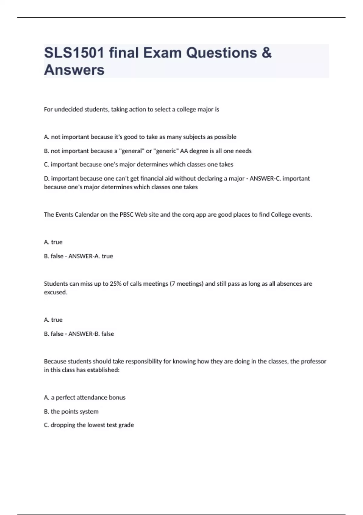 D. It is very important to attend every class and review each syllabus during this time - ANSWER-C.