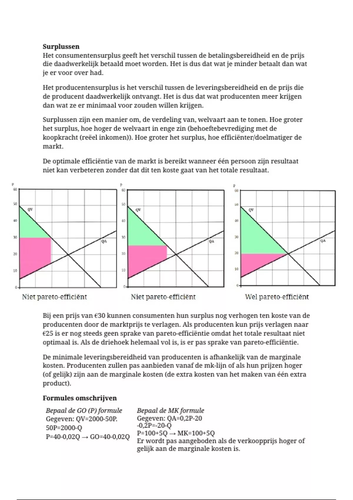 Surplussen zijn een manier om, de verdeling van, welvaart aan te tonen. Hoe groter