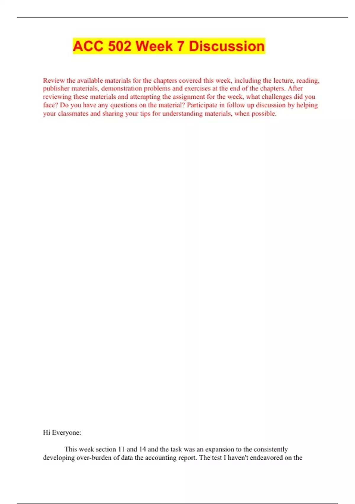ACC 502 Week 7 Discussion