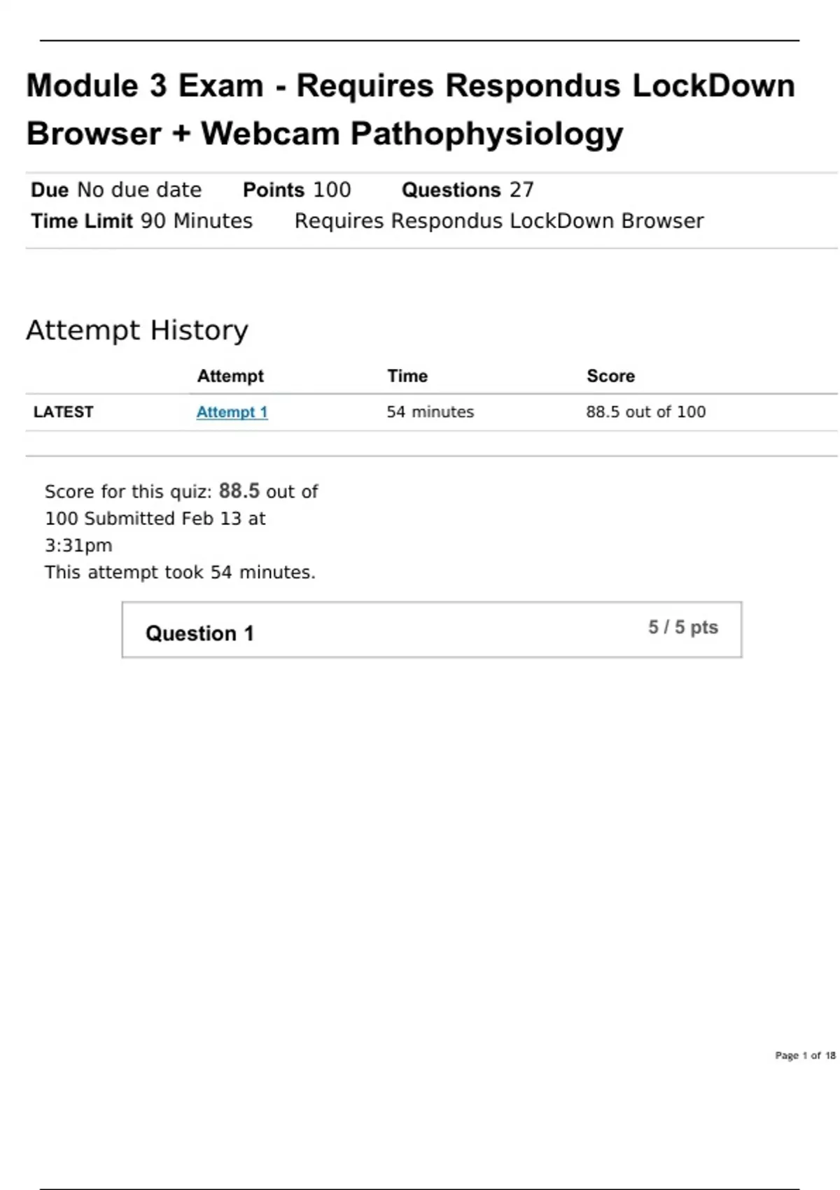 Module 3 Exam - Requires Respondus LockDown Browser + Webcam Pathophysiology