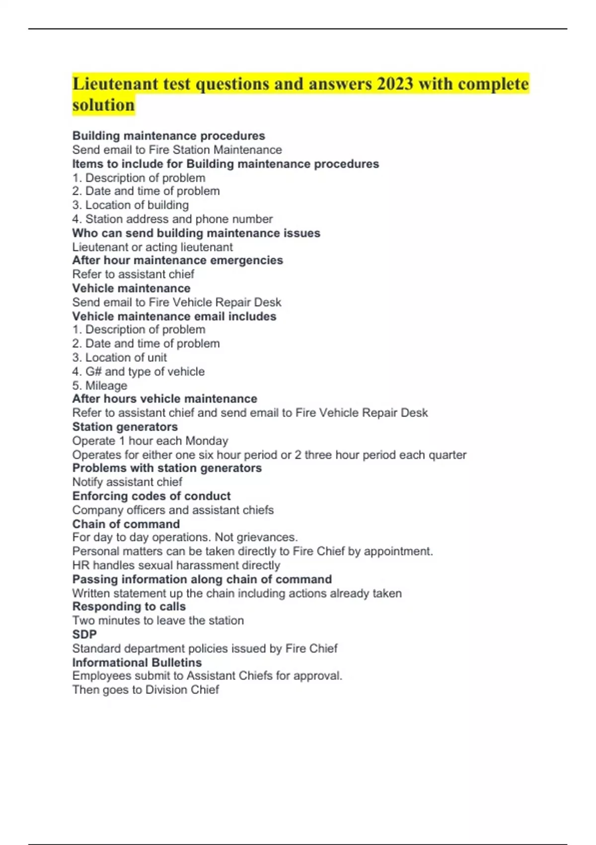 Refer to assistant chief and send email to Fire Vehicle Repair Desk