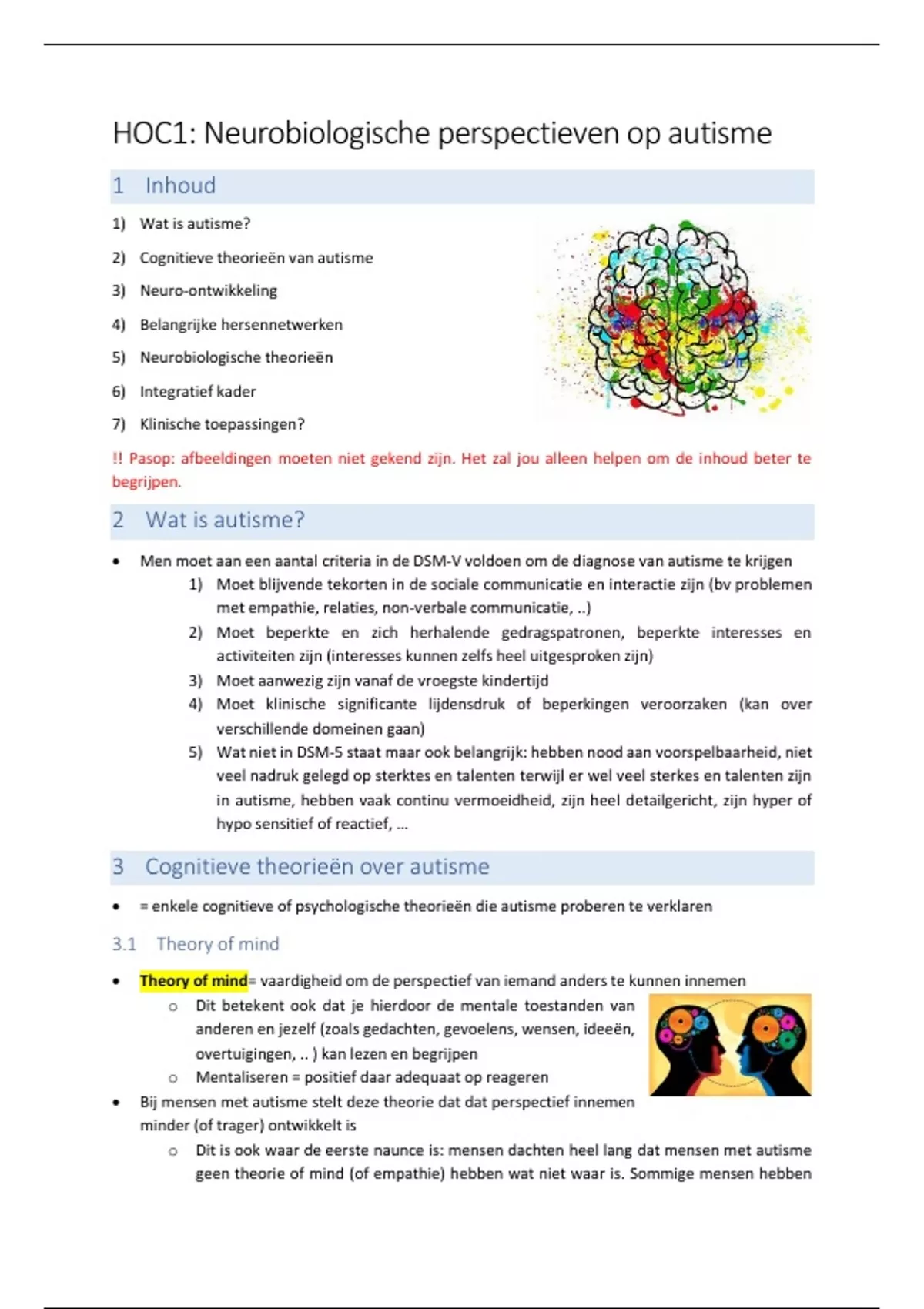 • = enkele cognitieve of psychologische theorieën die autisme proberen te verklaren