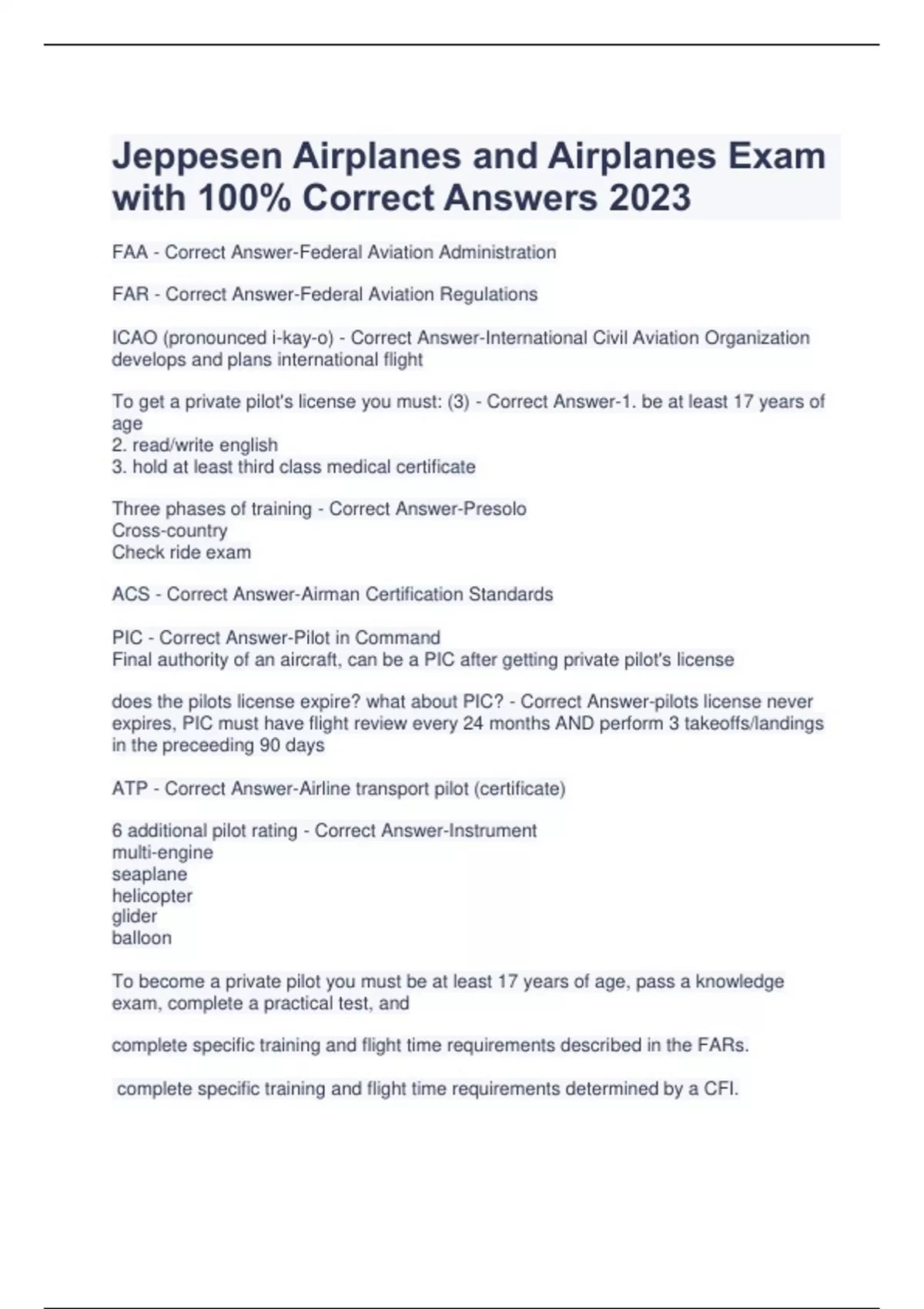 jeppesen airplanes and airplanes exam with 100 correct answers 2023