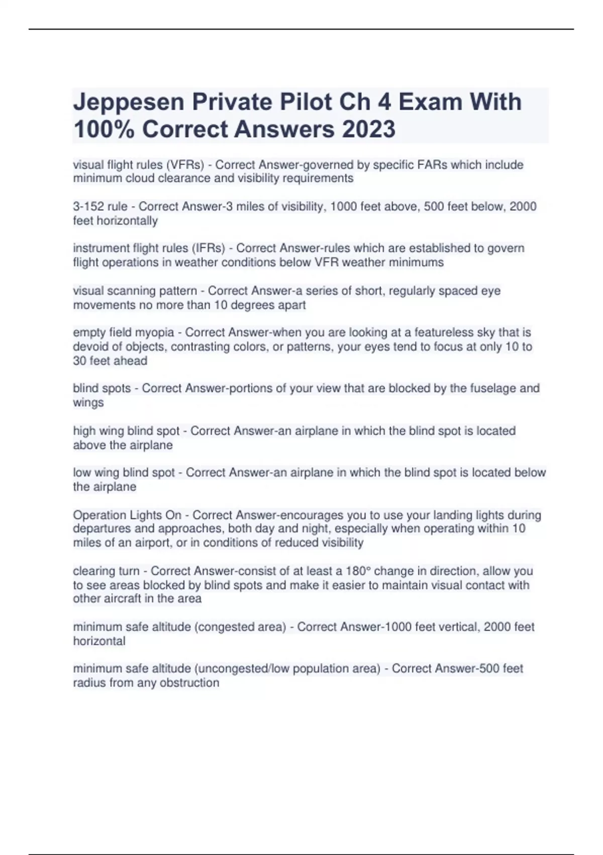 jeppesen private pilot ch 4 exam with 100 correct answers 2023