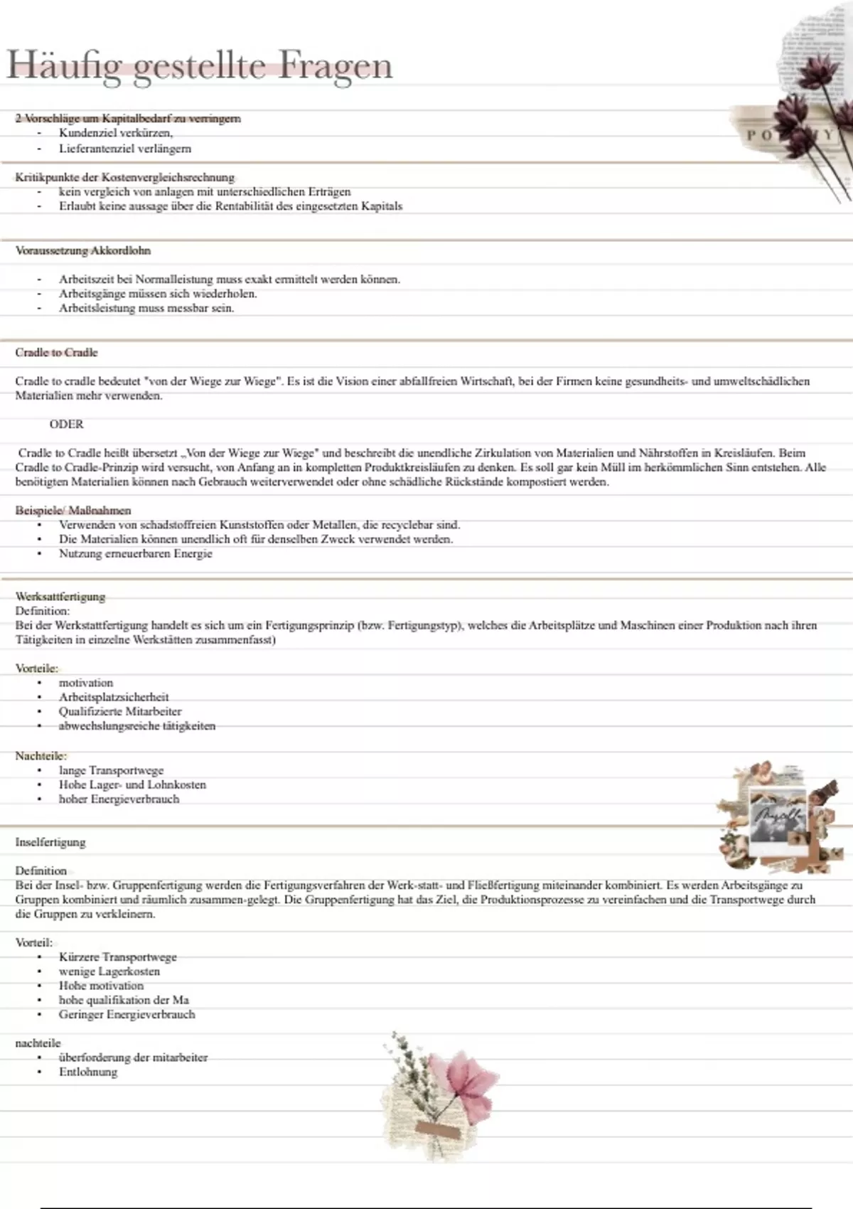 Bei der Insel- bzw. Gruppenfertigung werden die Fertigungsverfahren der Werk-statt- und Fließfertigung miteinander kombiniert. Es werden Arbeitsgänge zu