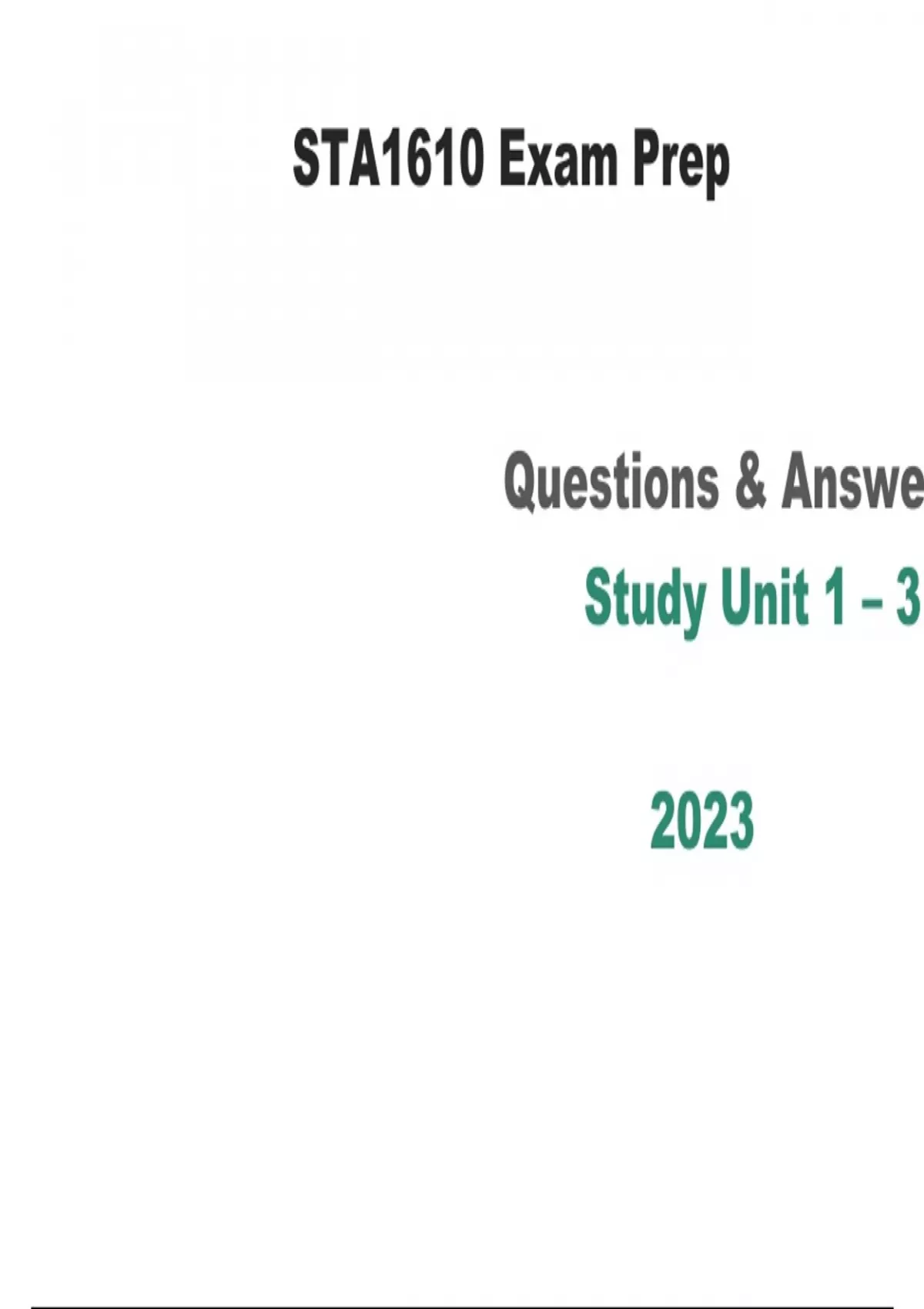 Exam of 30 pages for the course STA1610 - Introduction To Statistics at University of South Africa (100% sure)