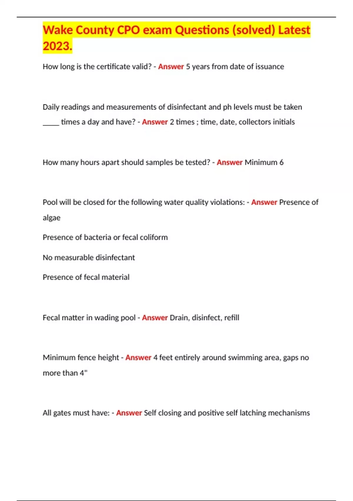 wake county cpo exam questions solved latest 2023