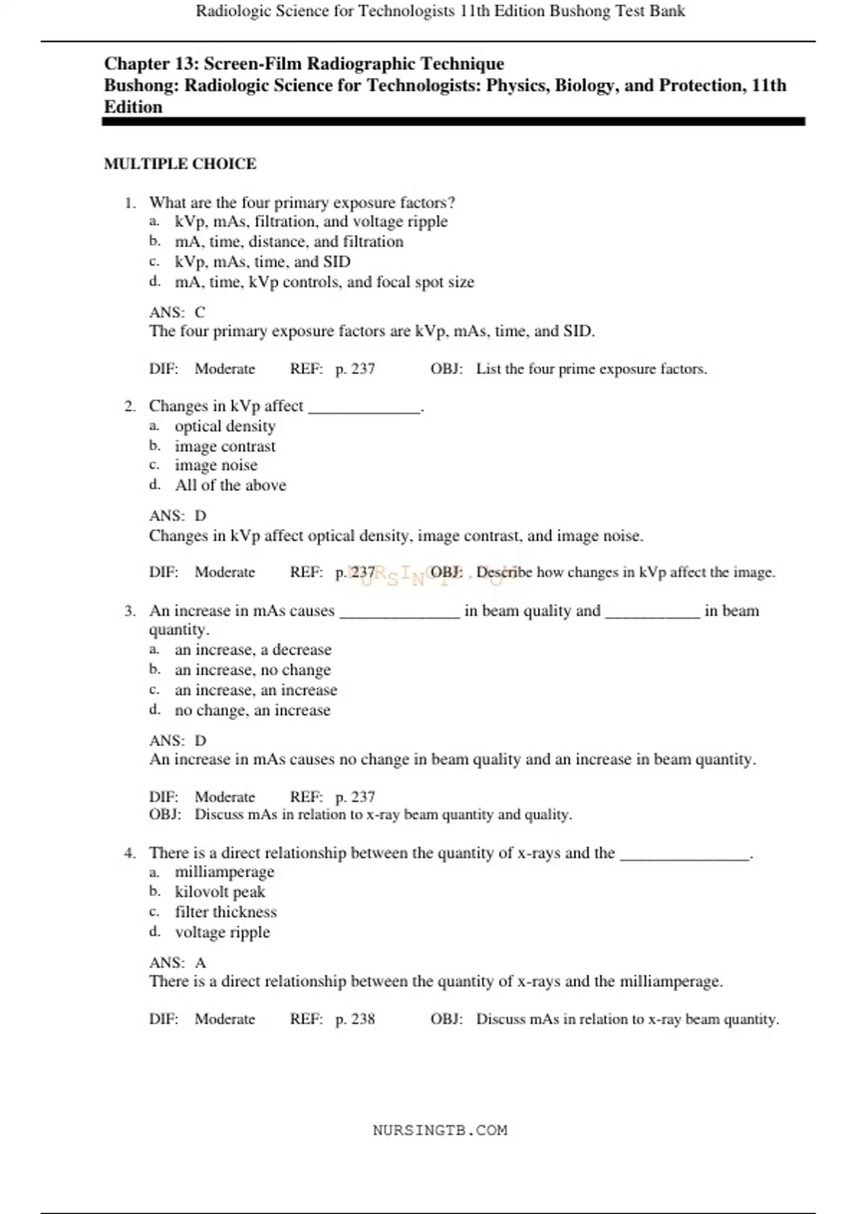 , Radiologic Science for Technologists 11th Edition Bushong Test Bank