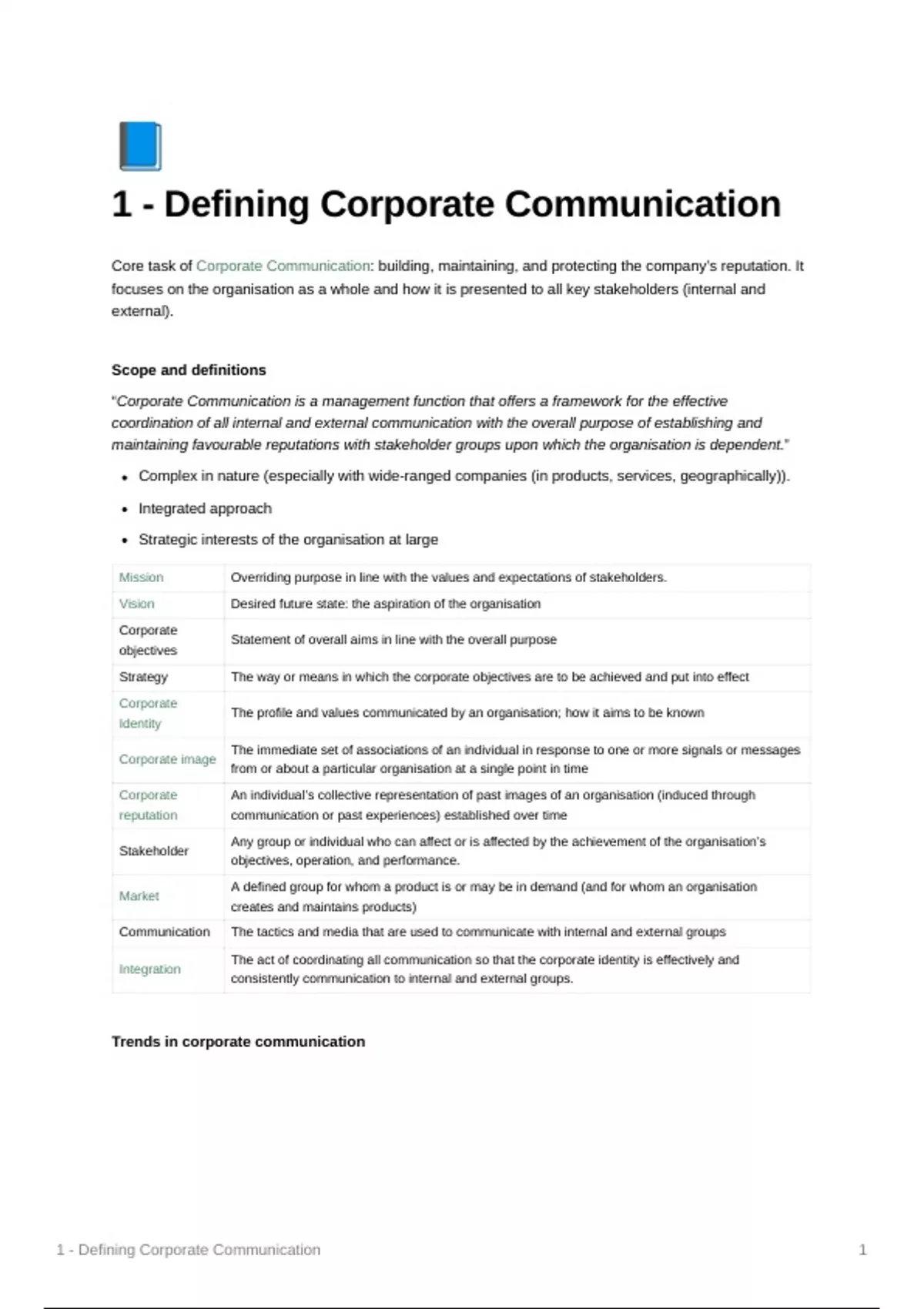 Summary of Cornelissen's book Corporate Communication of chapters 1, 4 to 13.