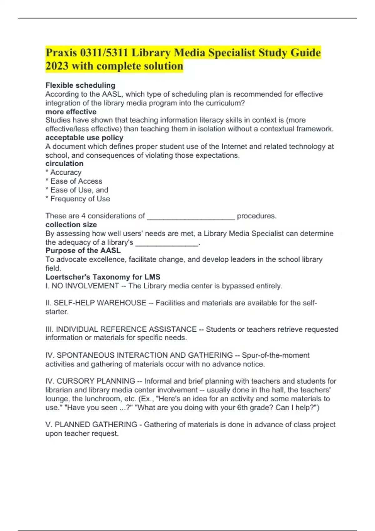 Loertscher's Taxonomy for LMS