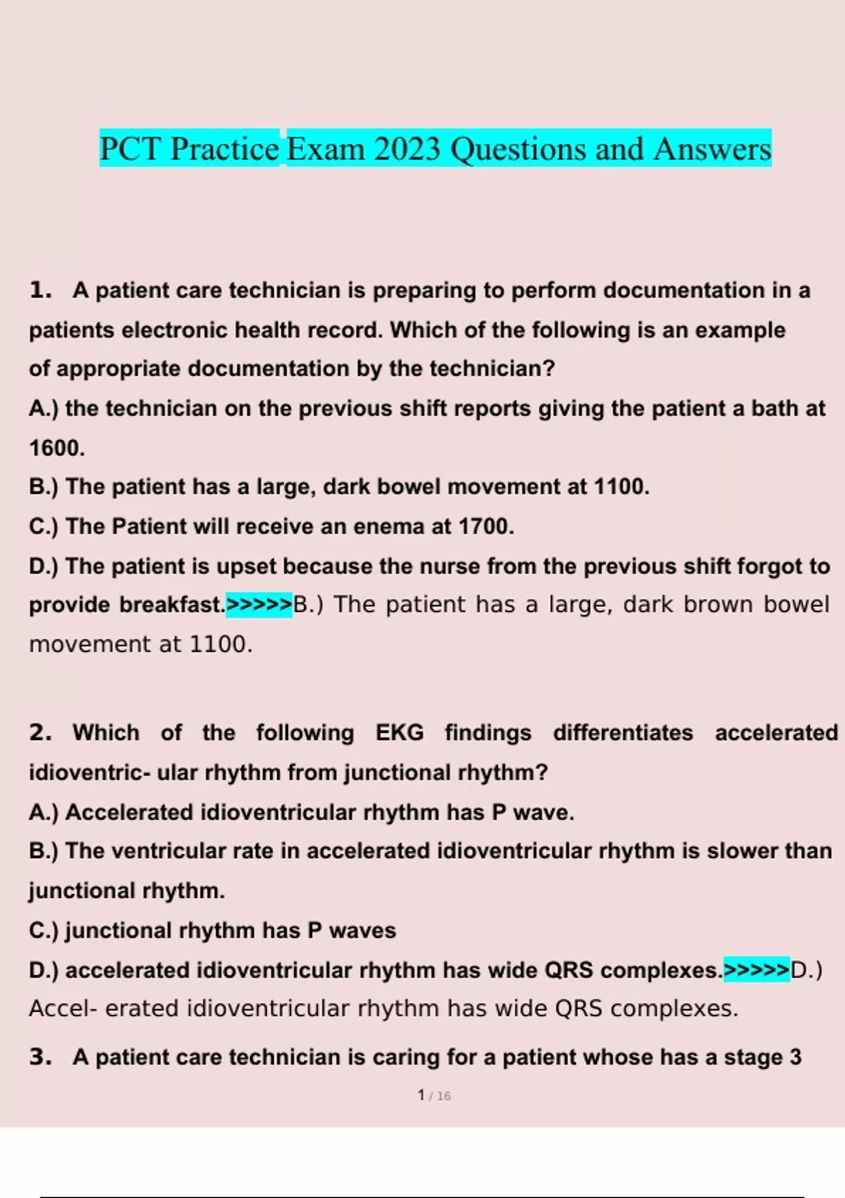 PCT practice exam questions verified with 100% correct answers