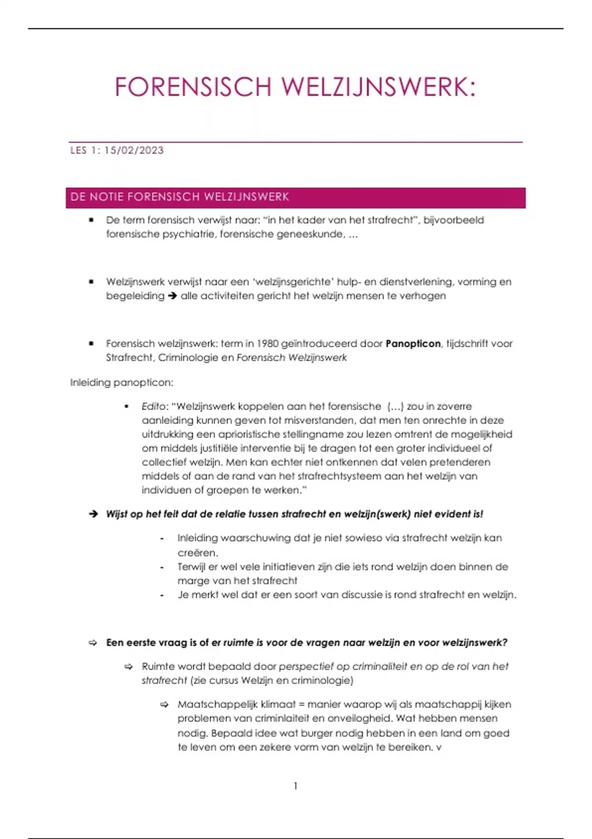 strafrecht (zie cursus Welzijn en criminologie)