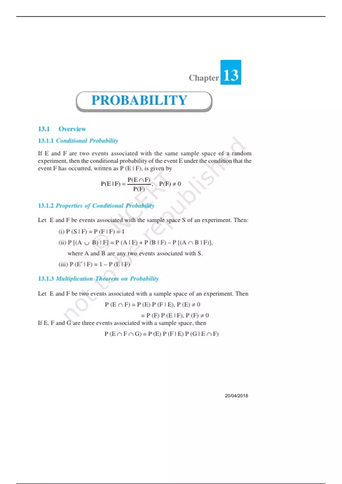 P (E ∩ F) = P (E) P (F | E), P (E) ≠ 0