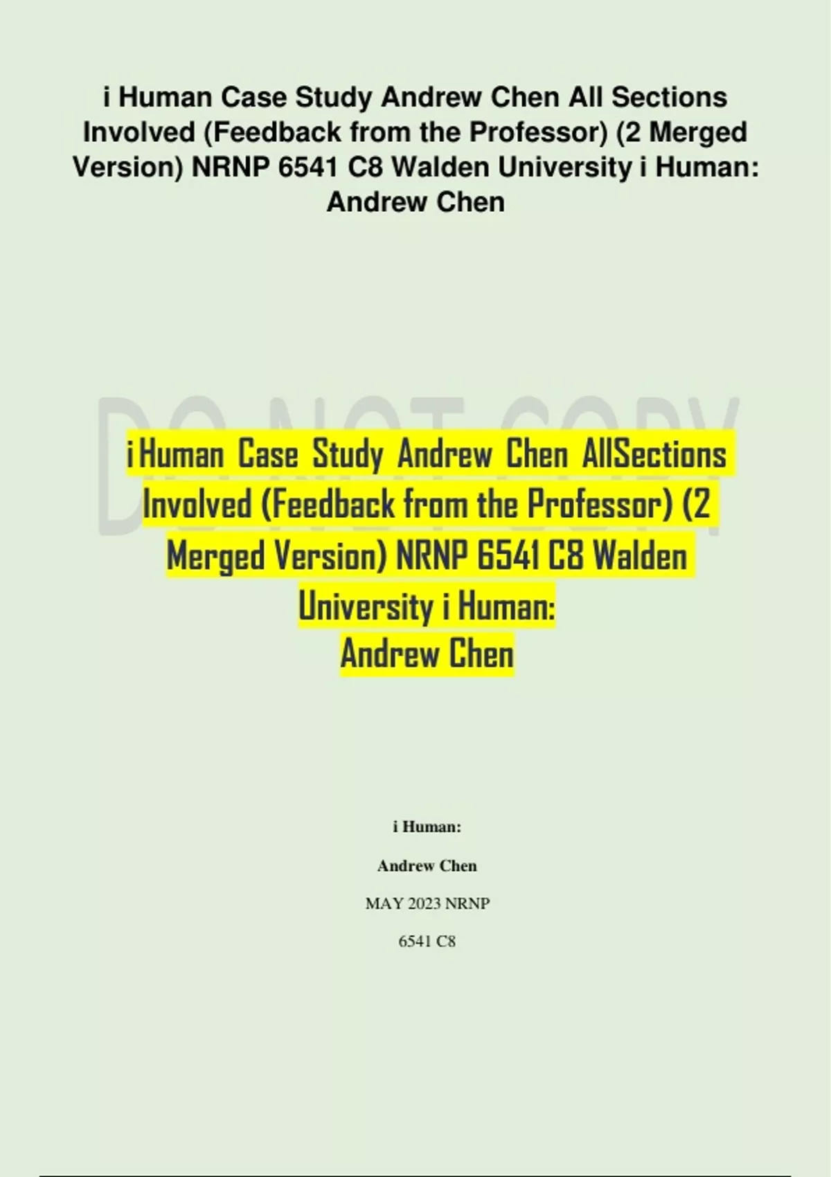 i Human Case Study Andrew Chen All Sections Involved (Feedback from the Professor) (2 Merged Version) NRNP 6541 C8 Walden University i Human: Andrew Chen