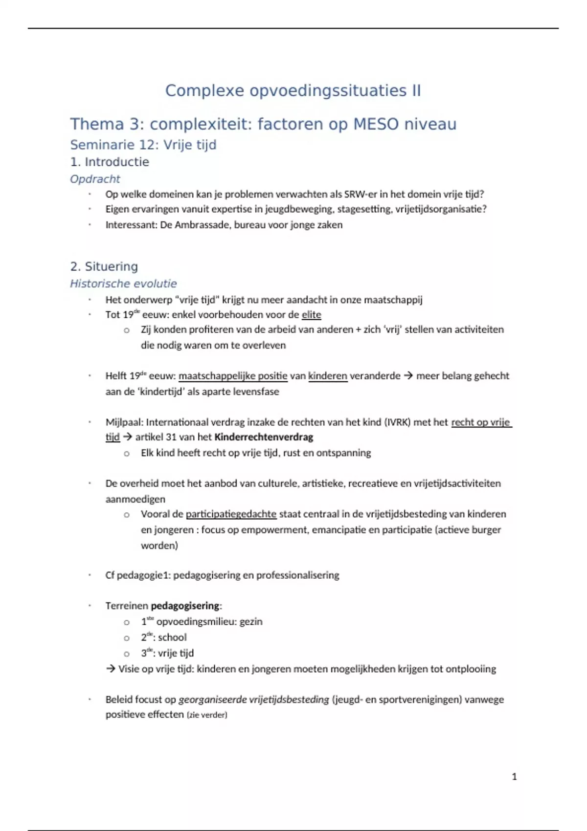 o Hoge sociale klassen: vrije tijd in het formeel, georganiseerd vrijetijdsaanbod
