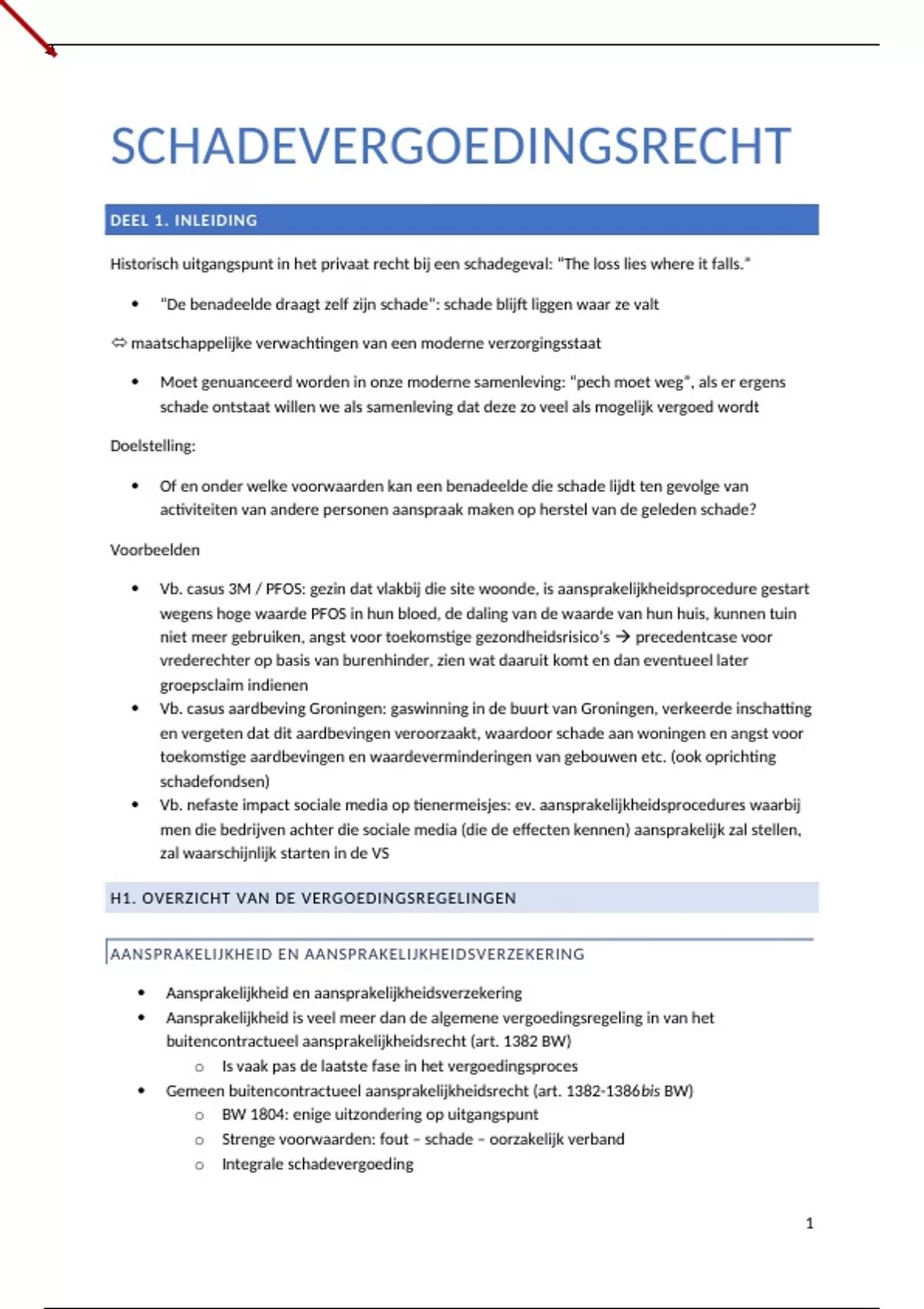 Schadevergoedingsrecht : samenvatting handboek + lesnotities