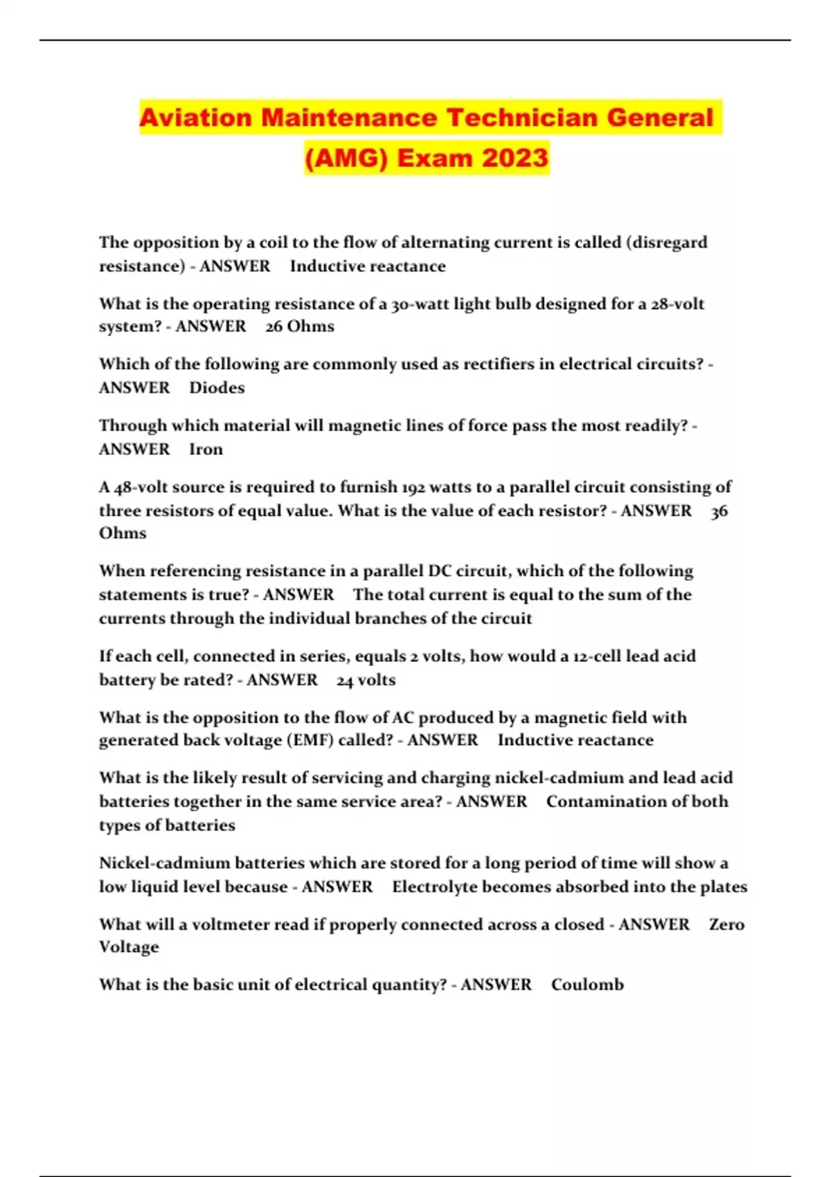 Aviation Maintenance Technician General (AMG) Exam 2023