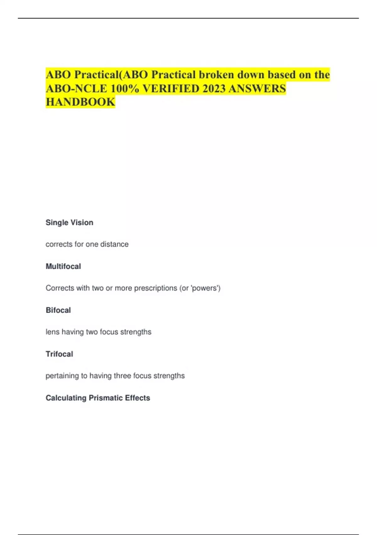 ABO Practical(ABO Practical broken down based on the ABO-NCLE 100% VERIFIED 2023 ANSWERS HANDBOOK