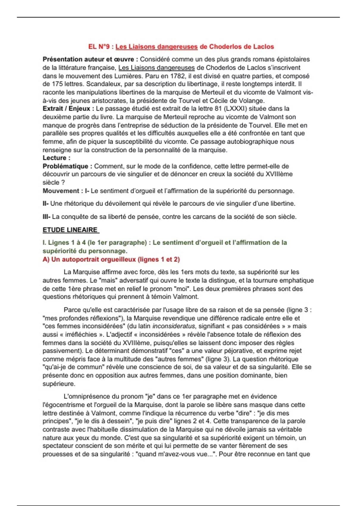 Etude Linéaire Les Liaisons dangereuses de Choderlos de Laclos