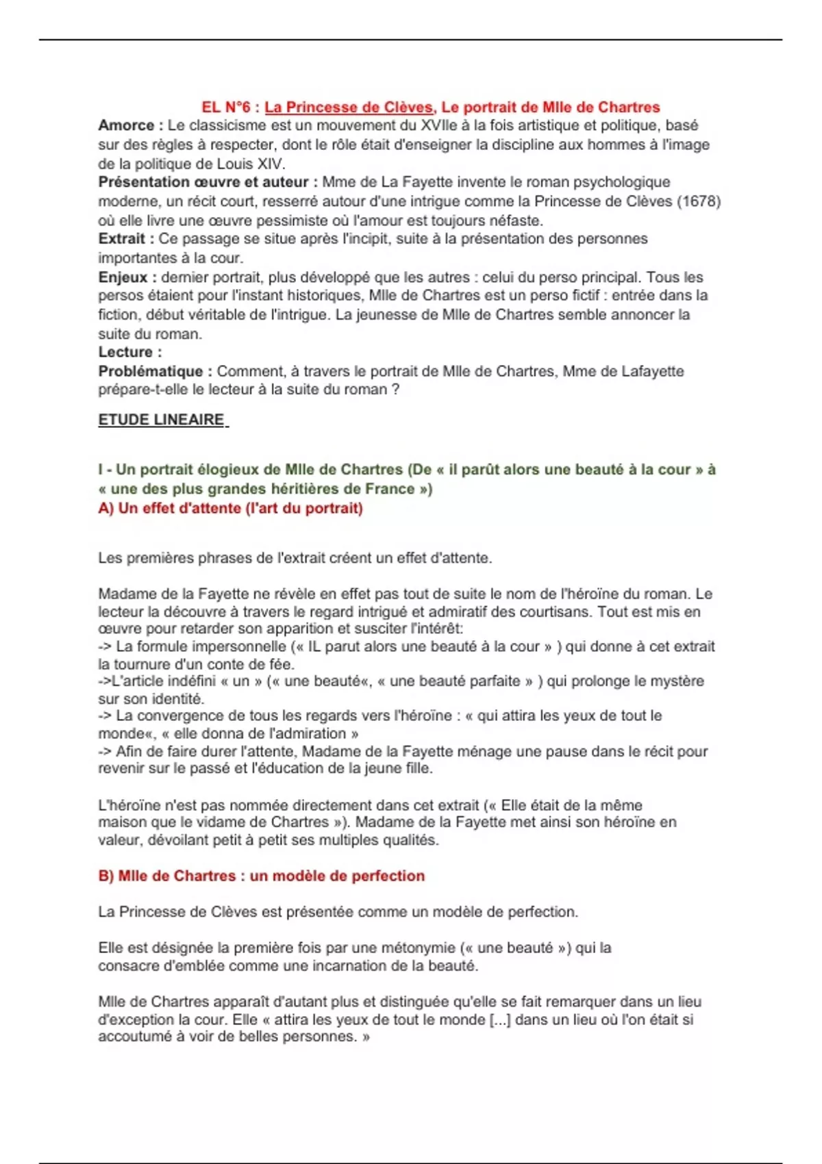 EL N°6 : La Princesse de Clèves, Le portrait de Mlle de Chartres