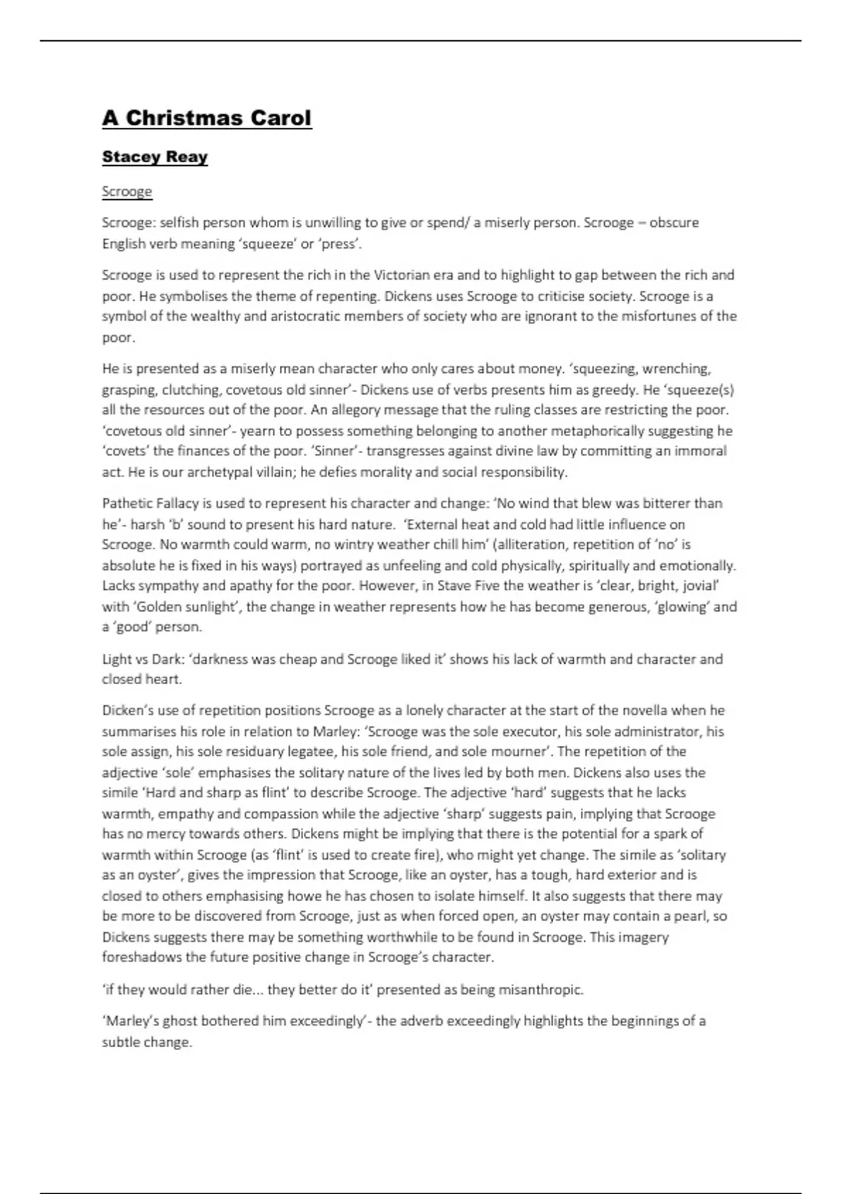 poor. He symbolises the theme of repenting. Dickens uses Scrooge to criticise society. Scrooge is a