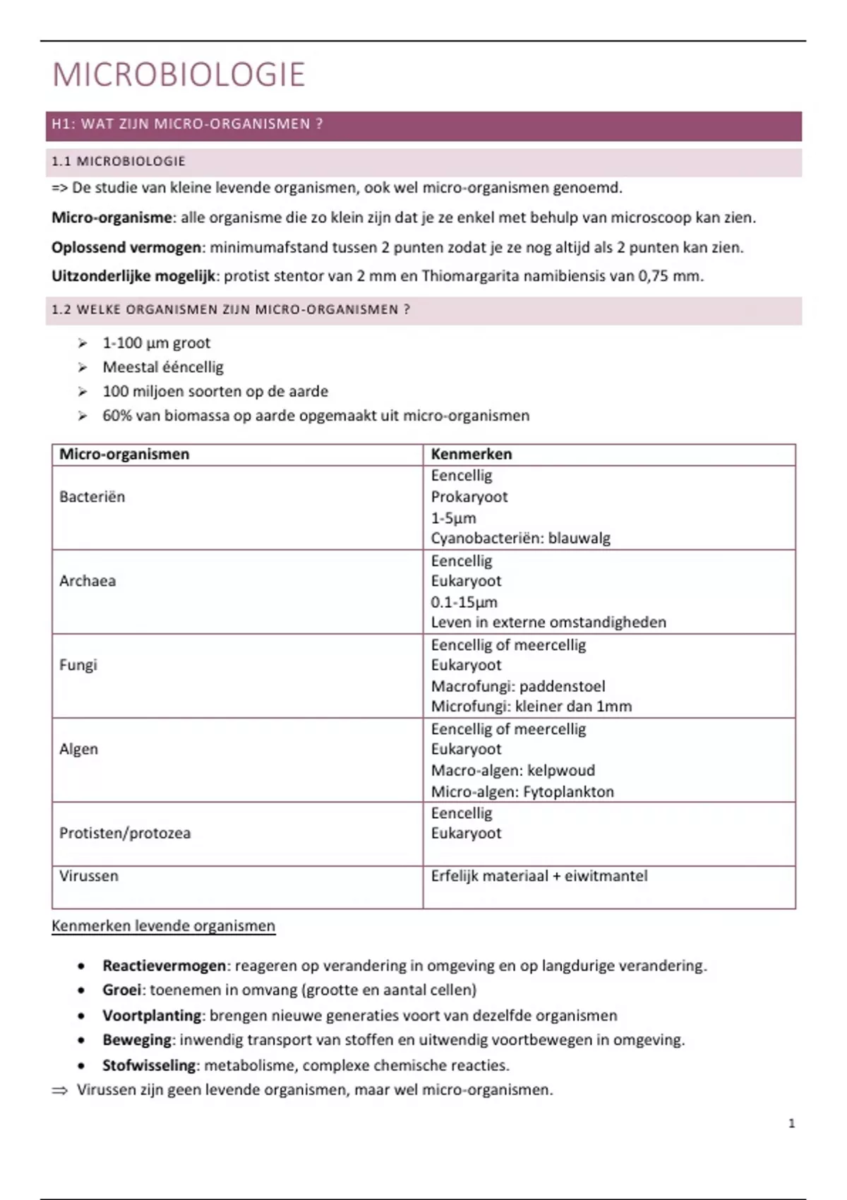 H1: WAT ZIJN MICRO-ORGANISMEN ?
