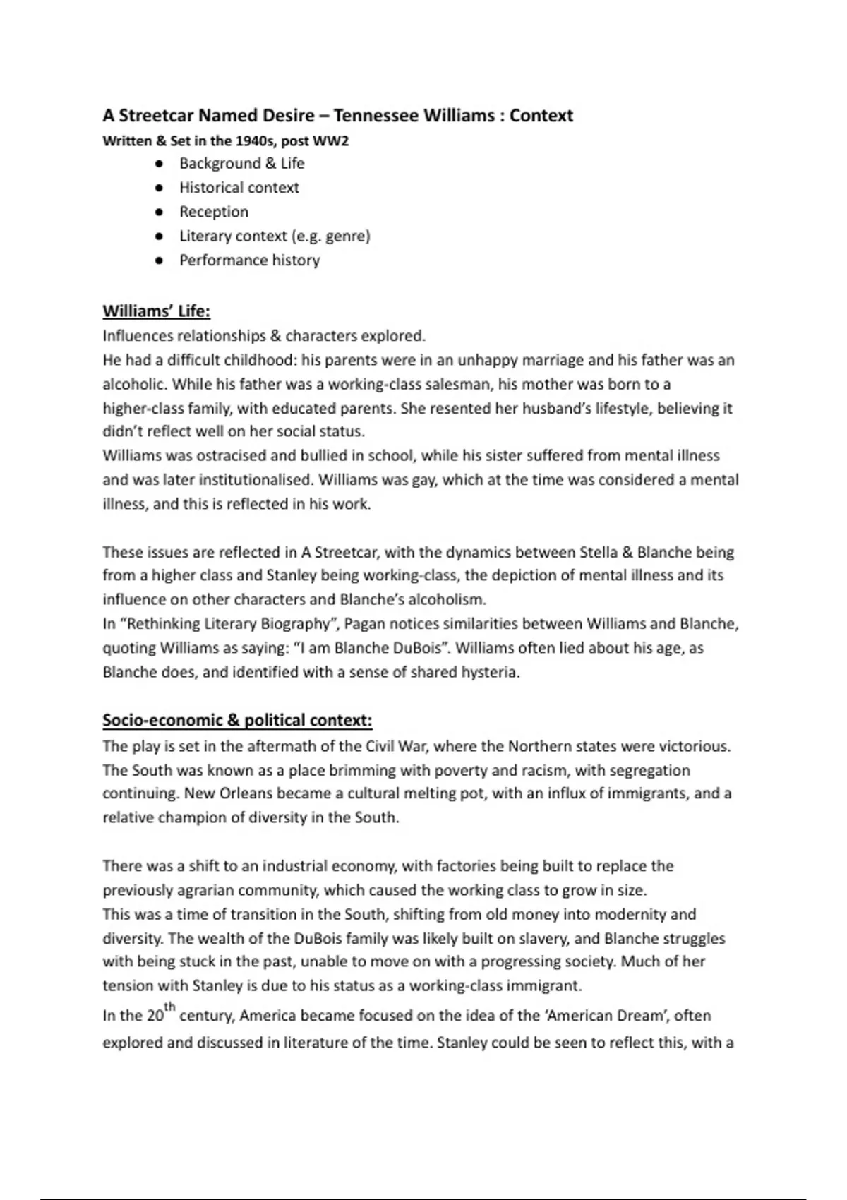 It is important to understand the societal context of A Streetcar Named Desire and the effect