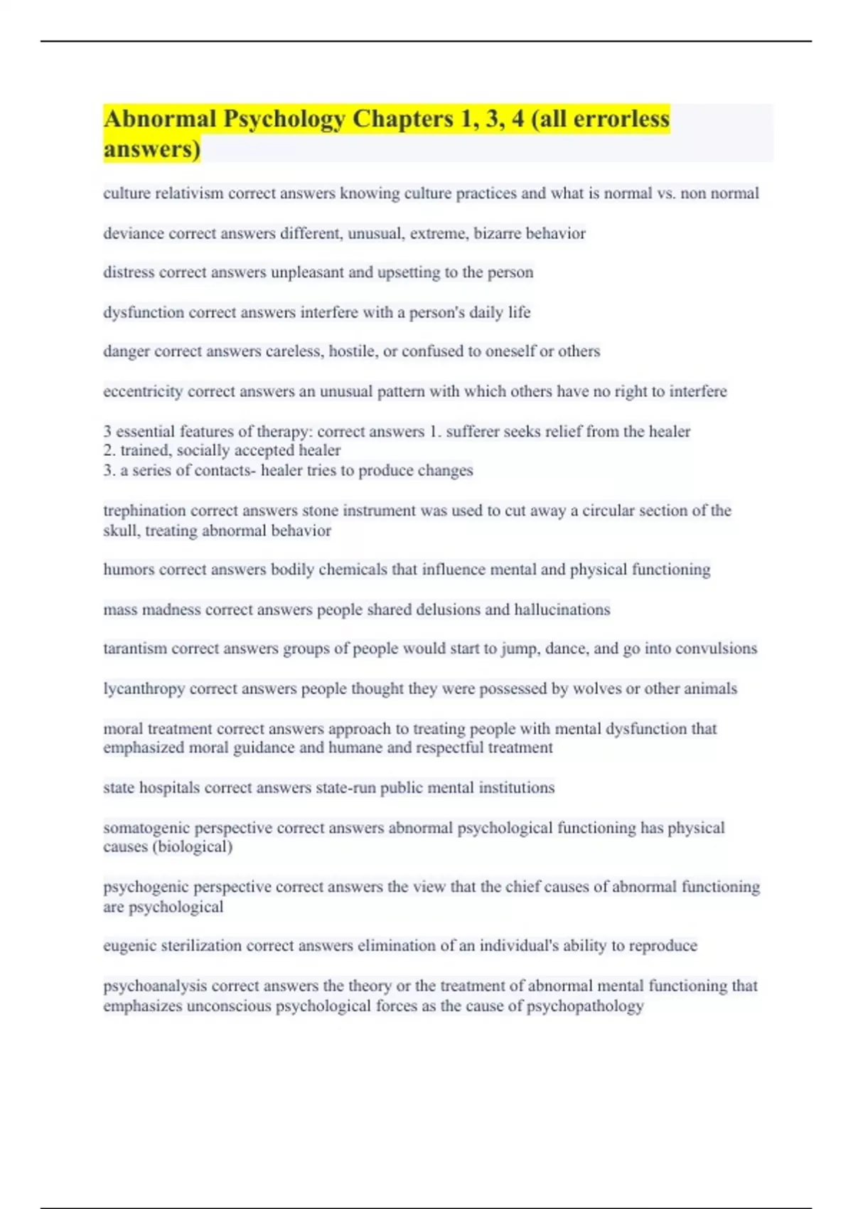Abnormal Psychology Chapters 1, 3, 4 (all errorless answers)
