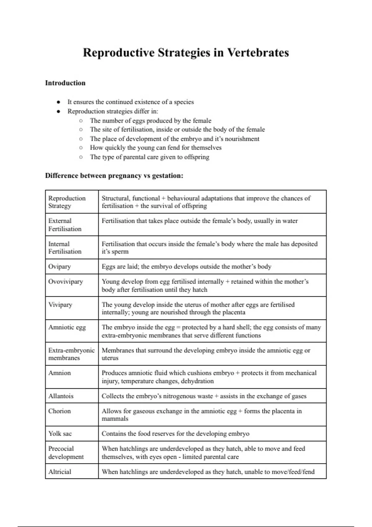 Reproductive Strategies in Vertebrates