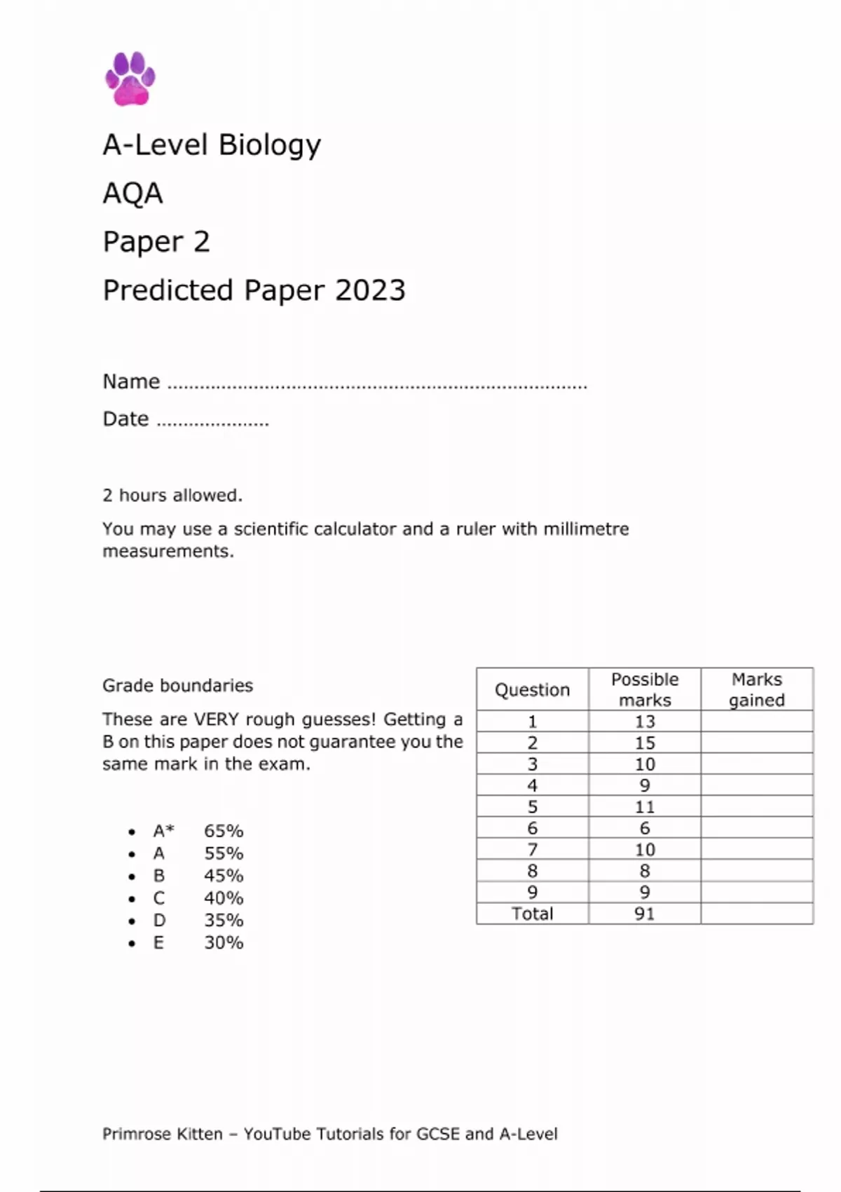 - AQA A LEVEL BIOLOGY PAPER 2 PREDICTED PAPER 2023