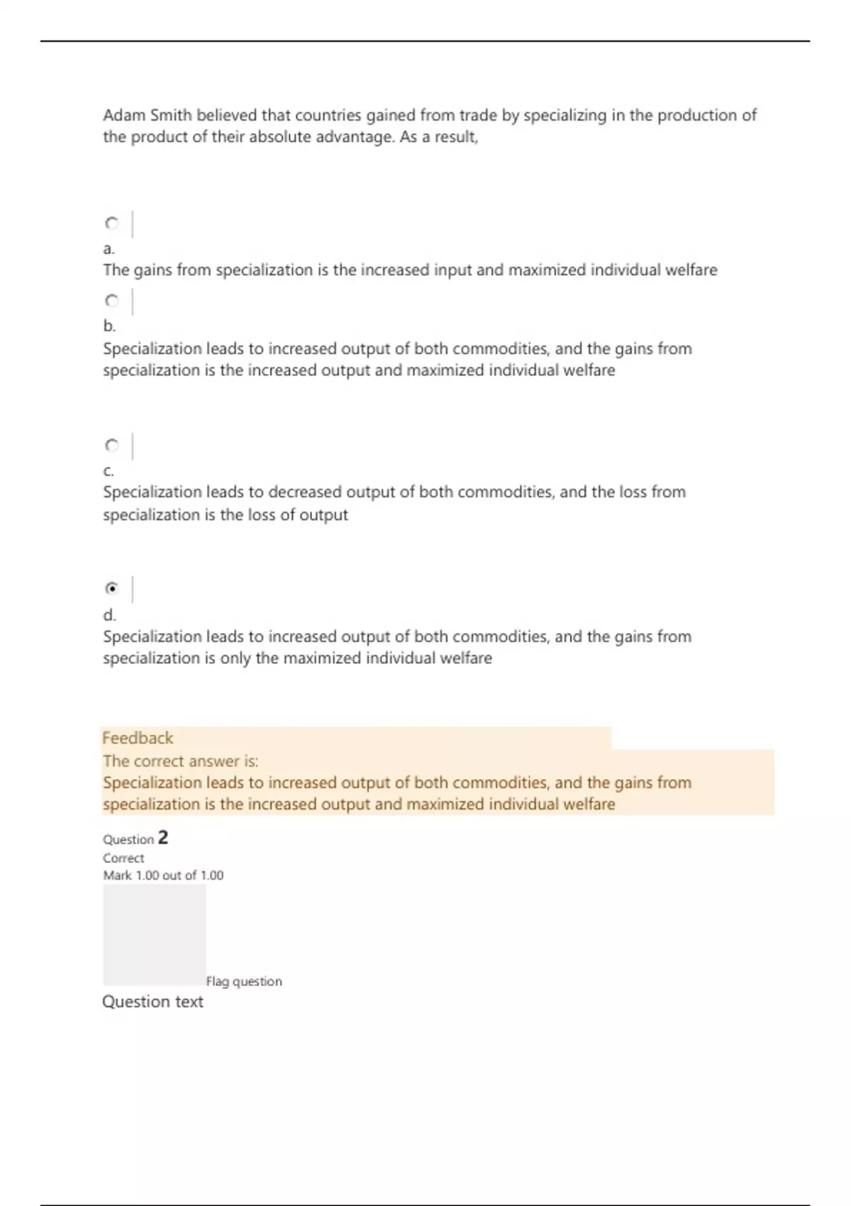 Adam Smith believed that countries gained from trade by specializing in the production of
