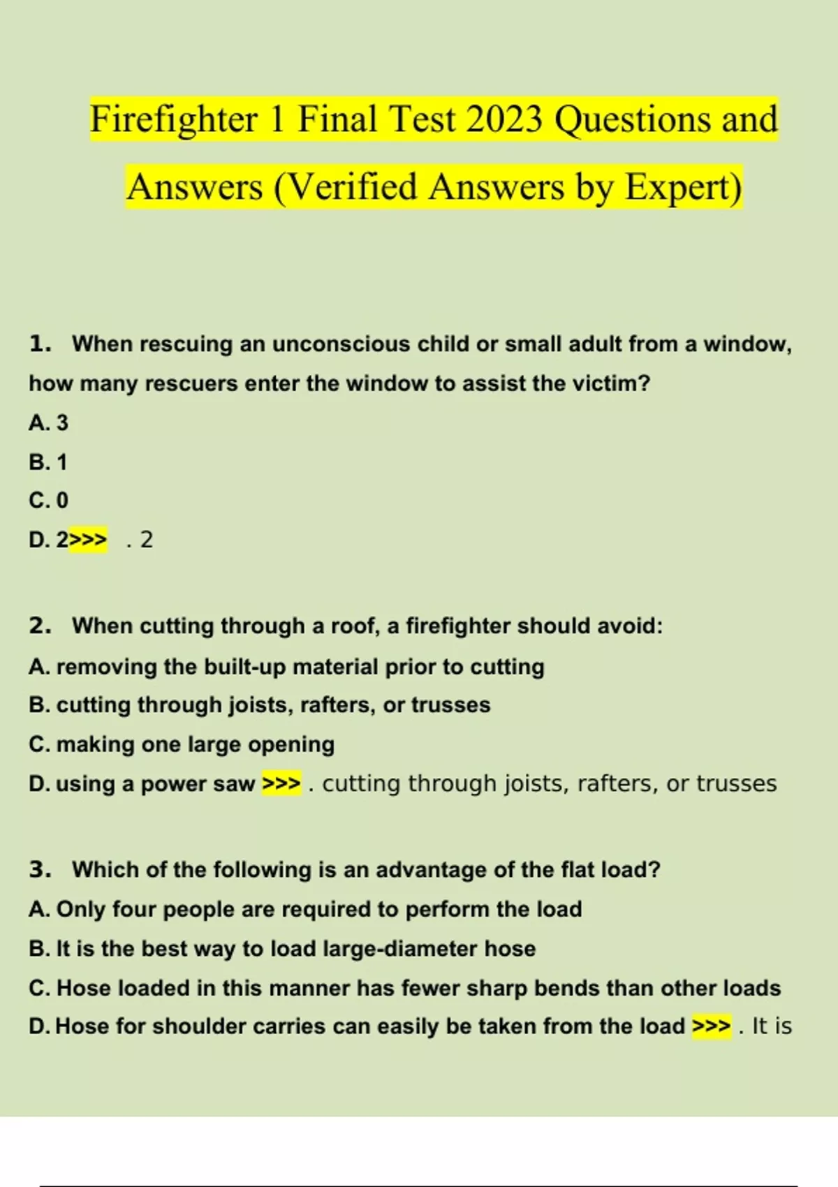 Firefighter 1 Final Test 2023 Questions and Answers (Verified Answers by Expert) Firefighter 1 Final Test 2023 Questions and Answers (Verified Answers by Expert)