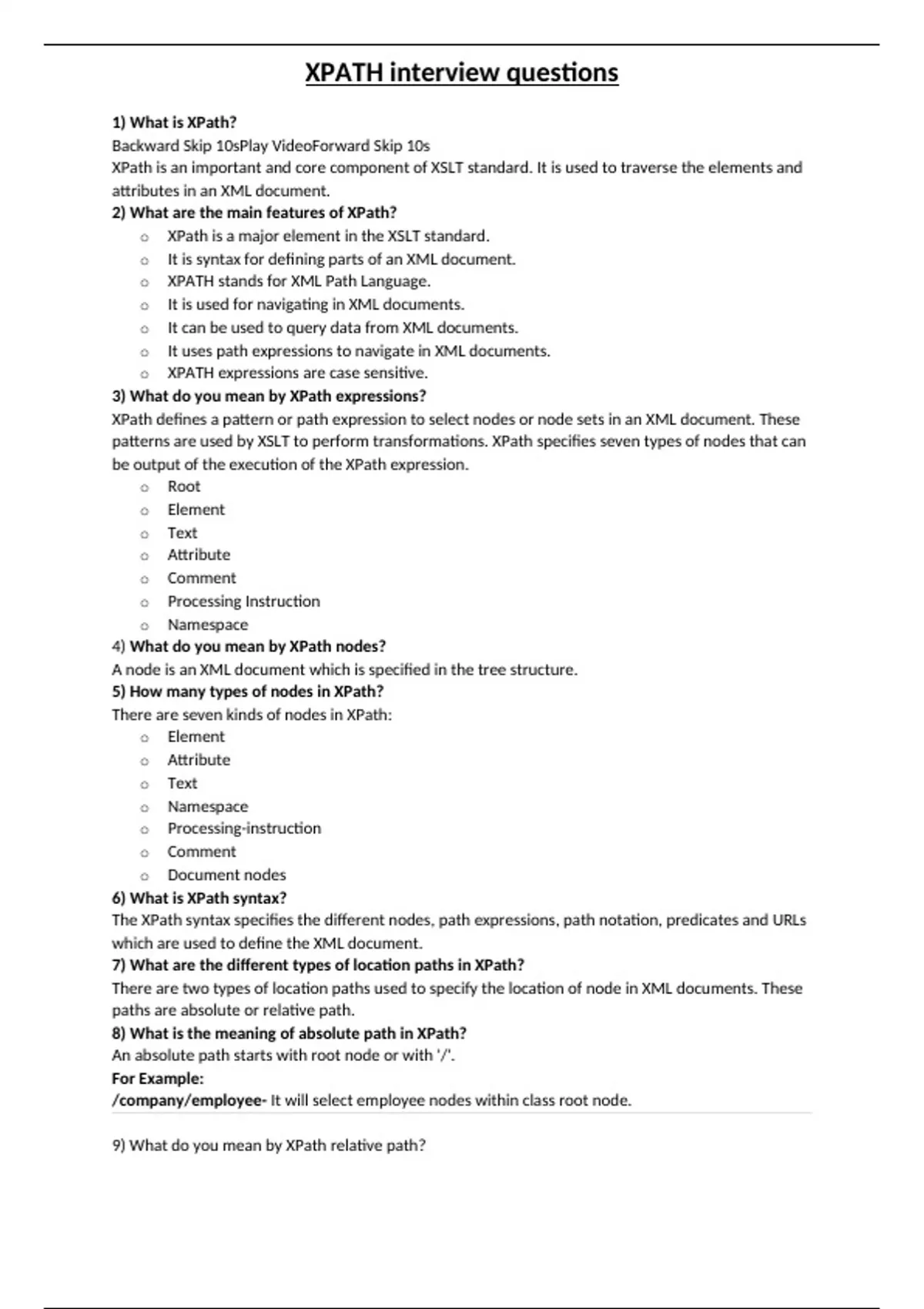 xpath xslt Interview preparation notes