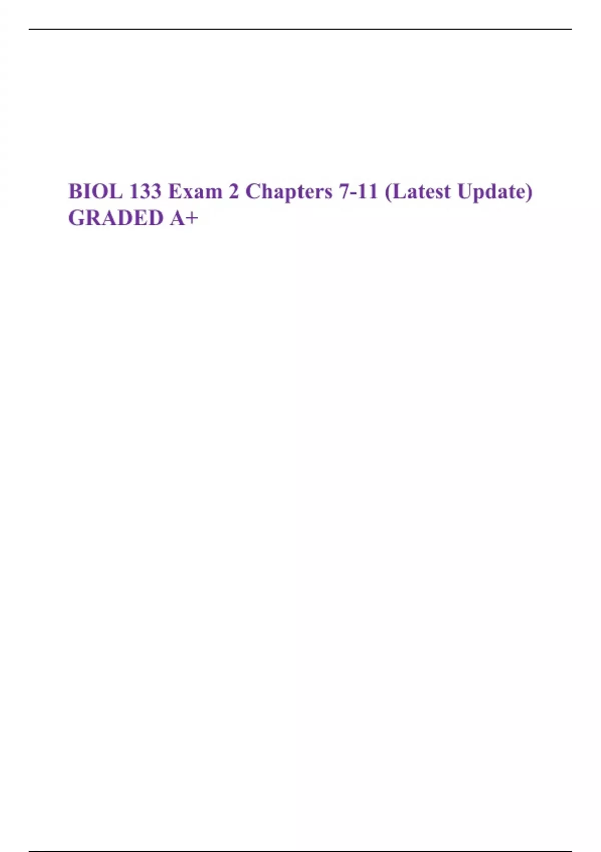 BIOL 133 Exam 2 Chapters 7-11 (Latest Update) GRADED A+