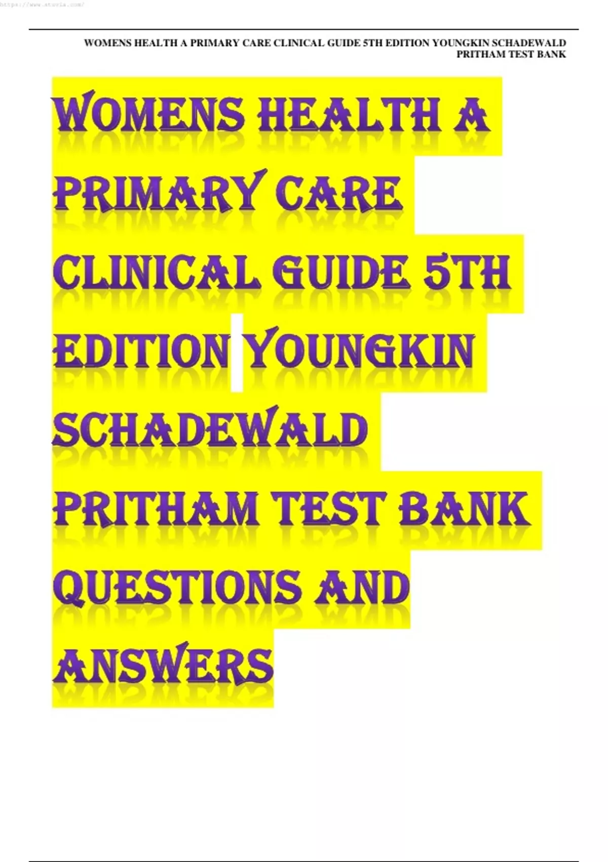 WOMENS HEALTH A PRIMARY CARE CLINICAL GUIDE 5TH EDITION YOUNGKIN SCHADEWALD PRITHAM TEST BANK