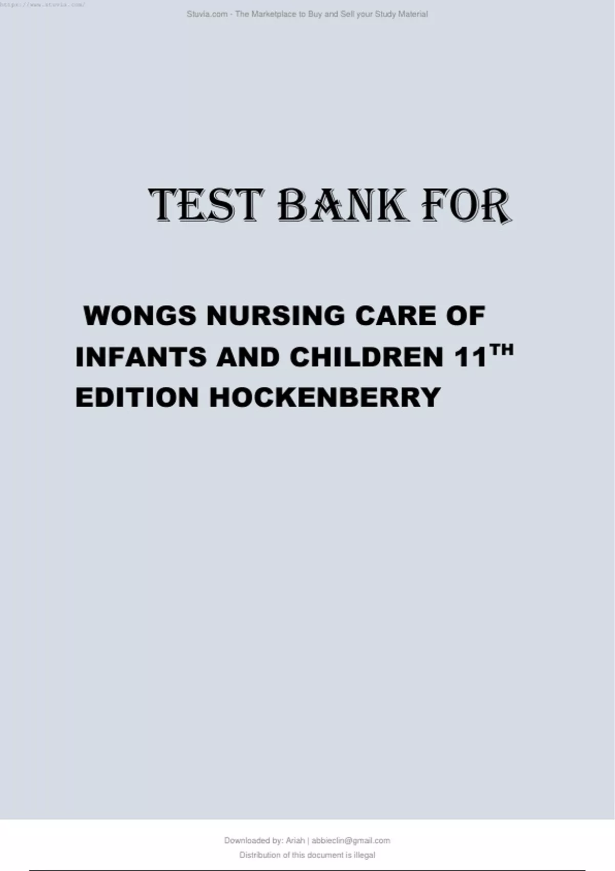 TEST BANK FOR WONGS NURSING CARE OF INFANTS AND CHILDREN 11TH EDITION HOCKENBERRY