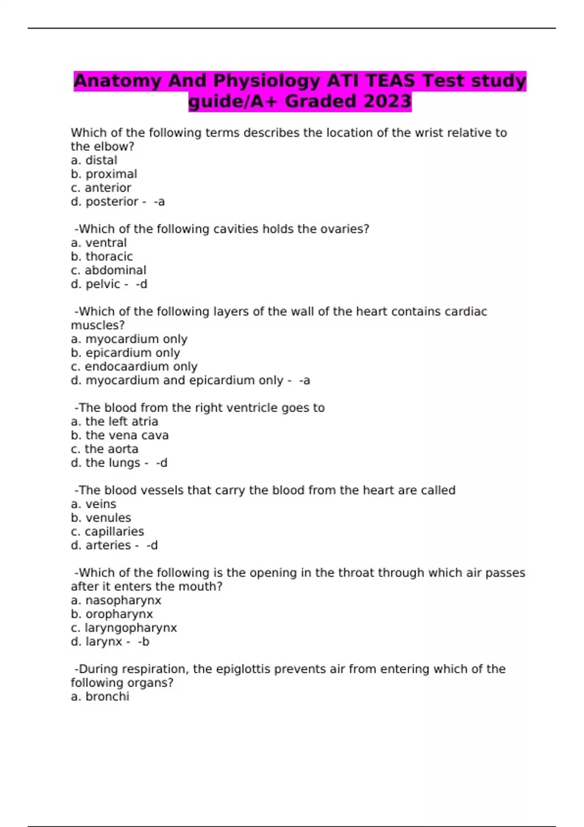 Anatomy And Physiology ATI TEAS Test study guide/A+ Graded 2023