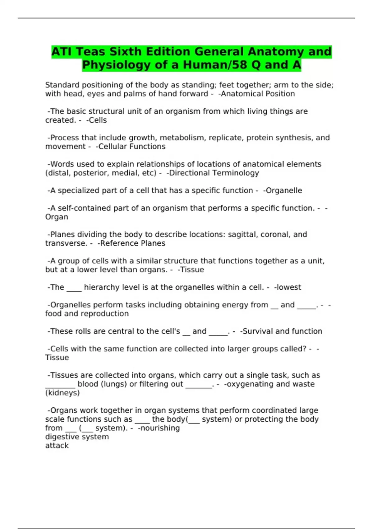 ATI Teas Sixth Edition General Anatomy and Physiol