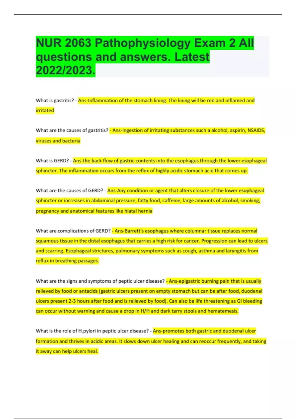 NUR 2063 Pathophysiology Exam 2 All questions and answers. Latest 2022/2023.
