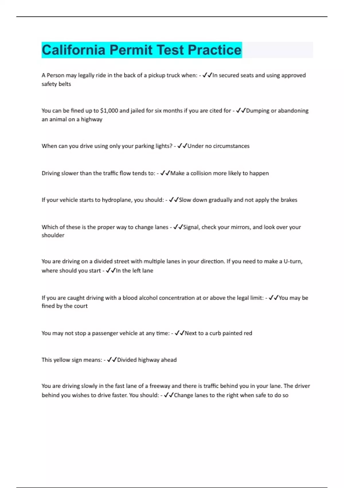 California Permit Test Practice| Questions With 100% Correct Answers | Verified