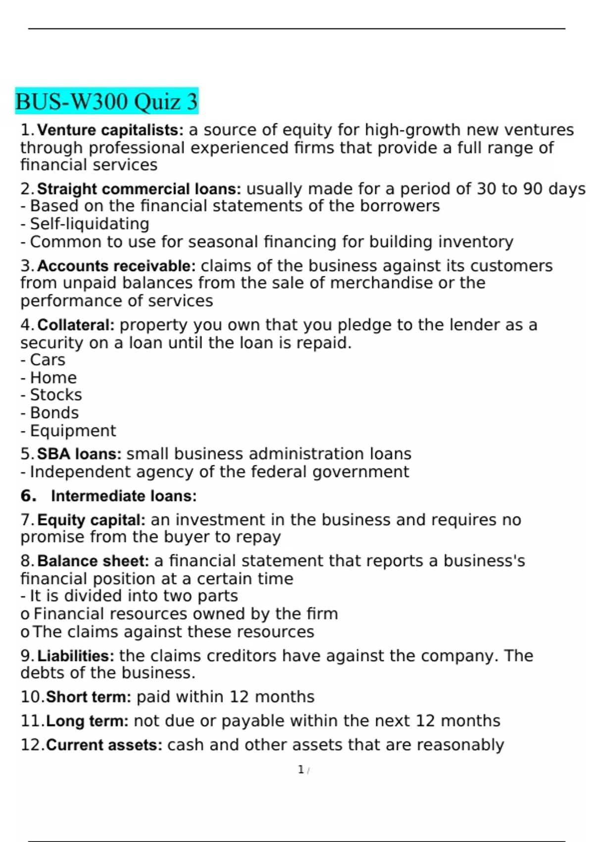 BUS 300 Week 3 Quiz 2 LATEST WITH COMPLETE SOLUTIONS GRADE A